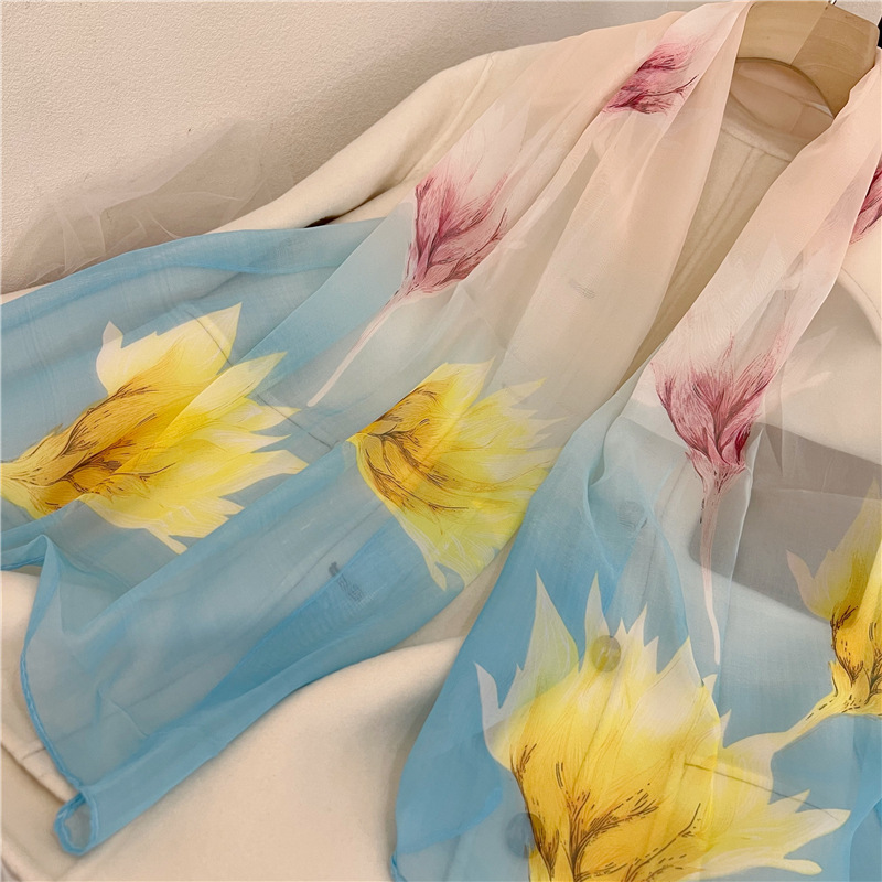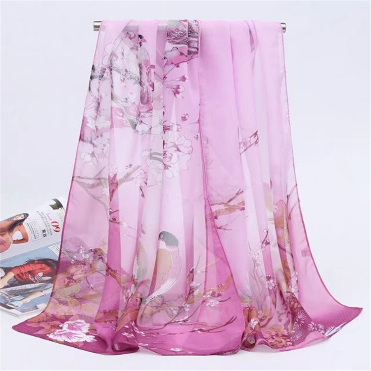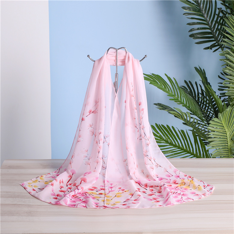 까치 프리머스 봄 그림 시폰 긴 스카프 여성 얇은 외부 목도리 저렴한 선물 봄과 여름 선 스크린 모래