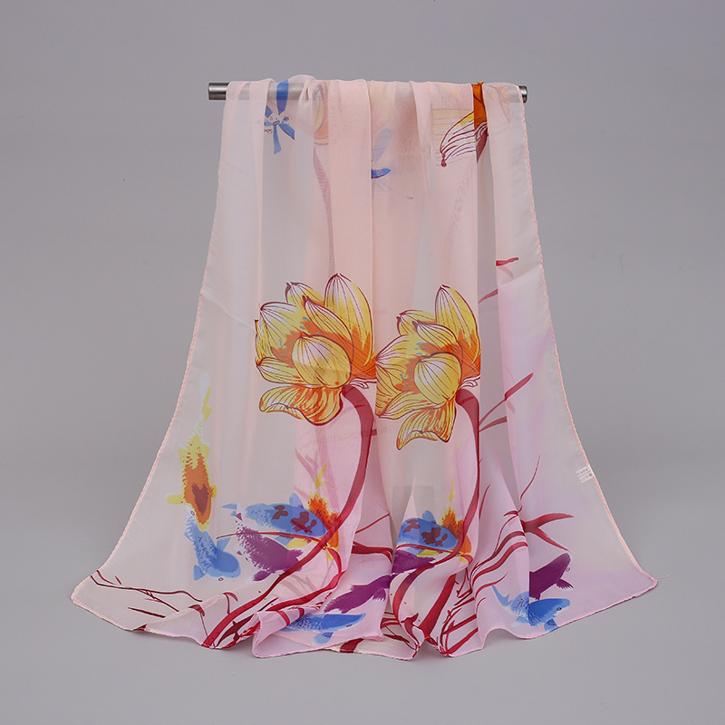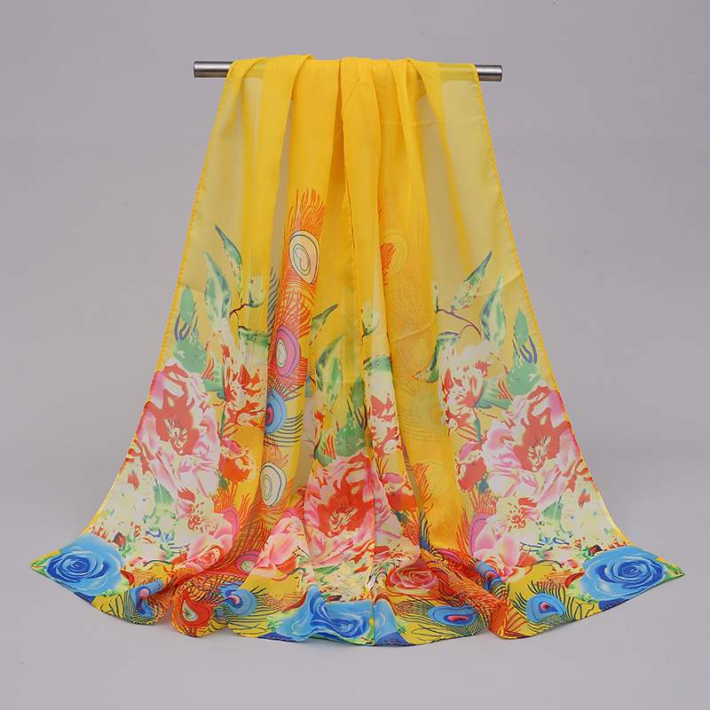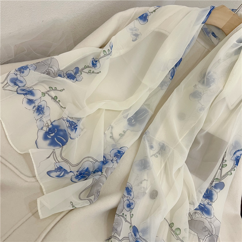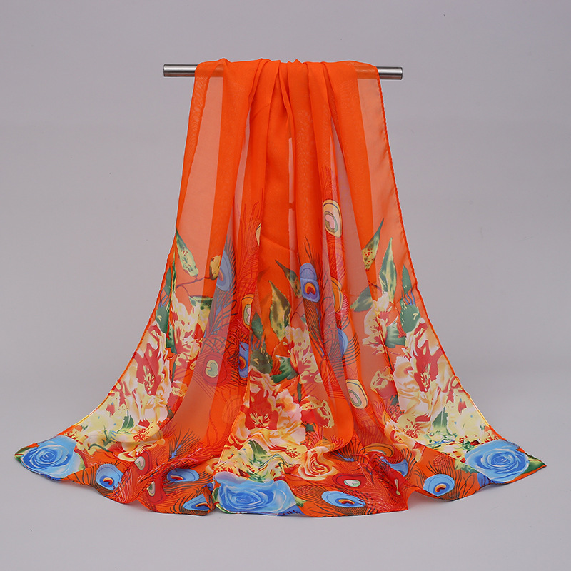 까치 프리머스 봄 그림 시폰 긴 스카프 여성 얇은 외부 목도리 저렴한 선물 봄과 여름 선 스크린 모래스토어 가기