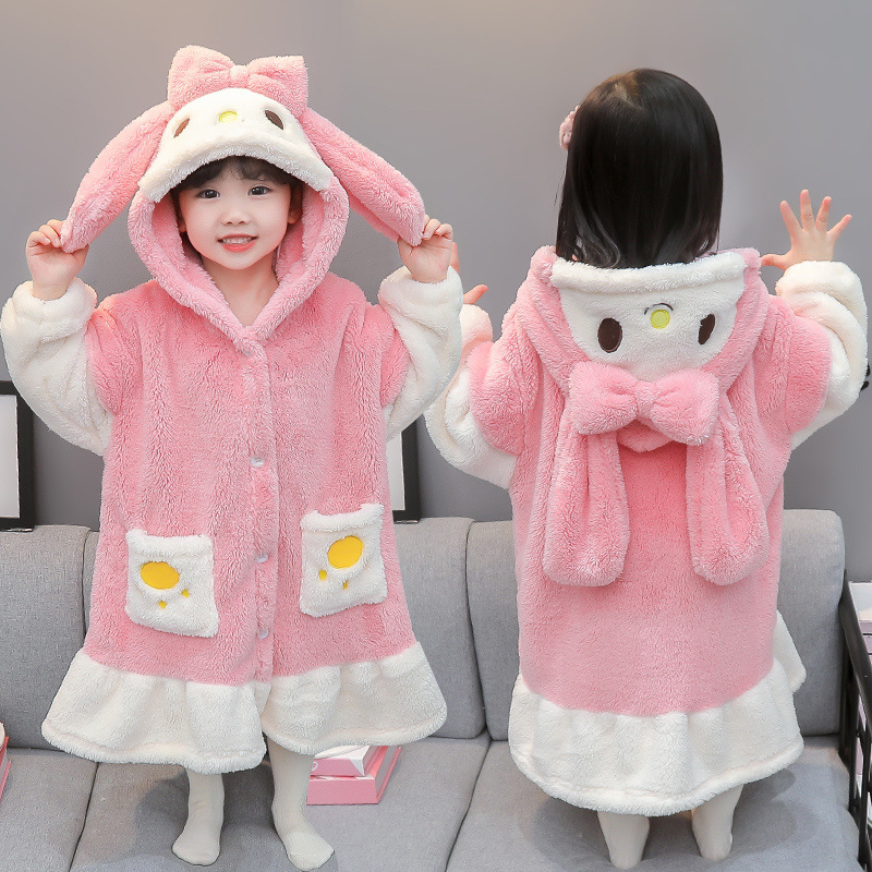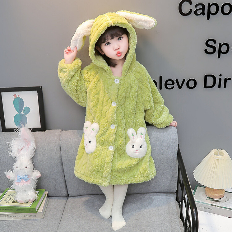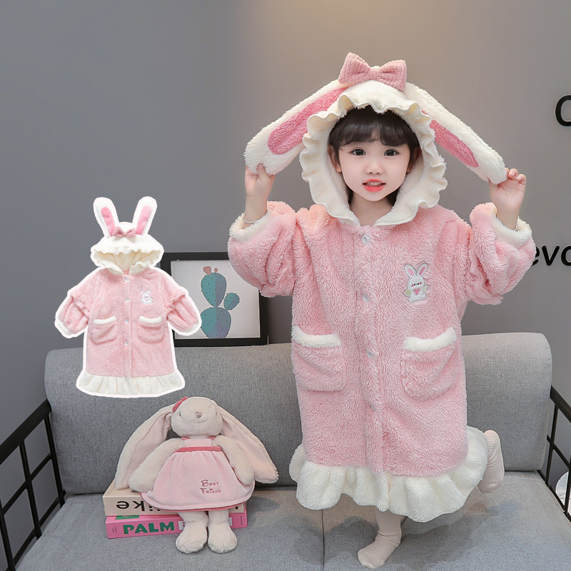 여자 잠옷 가을 겨울 플란넬 아기 두꺼운 산호 양털 따뜻한 어린이 겨울 목욕 가운 홈 옷