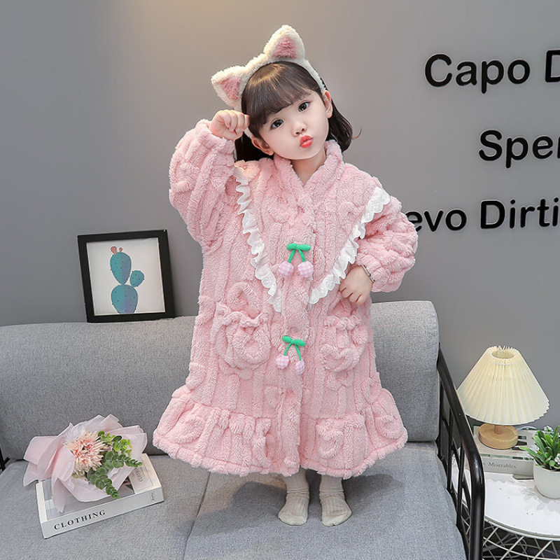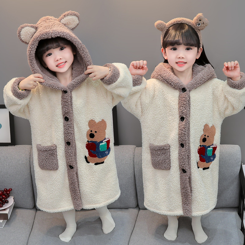 여자 잠옷 가을 겨울 플란넬 아기 두꺼운 산호 양털 따뜻한 어린이 겨울 목욕 가운 홈 옷스토어 가기