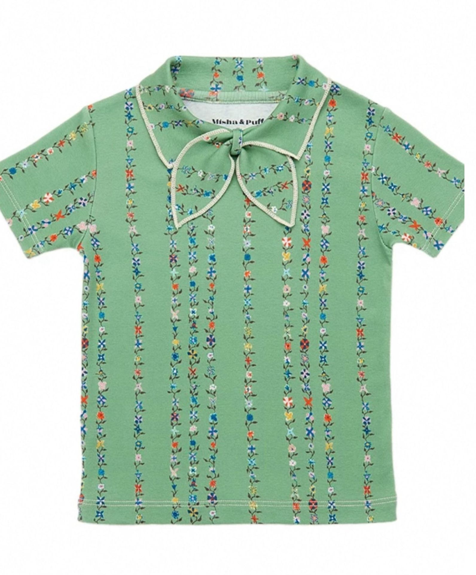 • 25mp 작은 나비 넥타이 반팔 - 잔디 녹색 꽃 벽