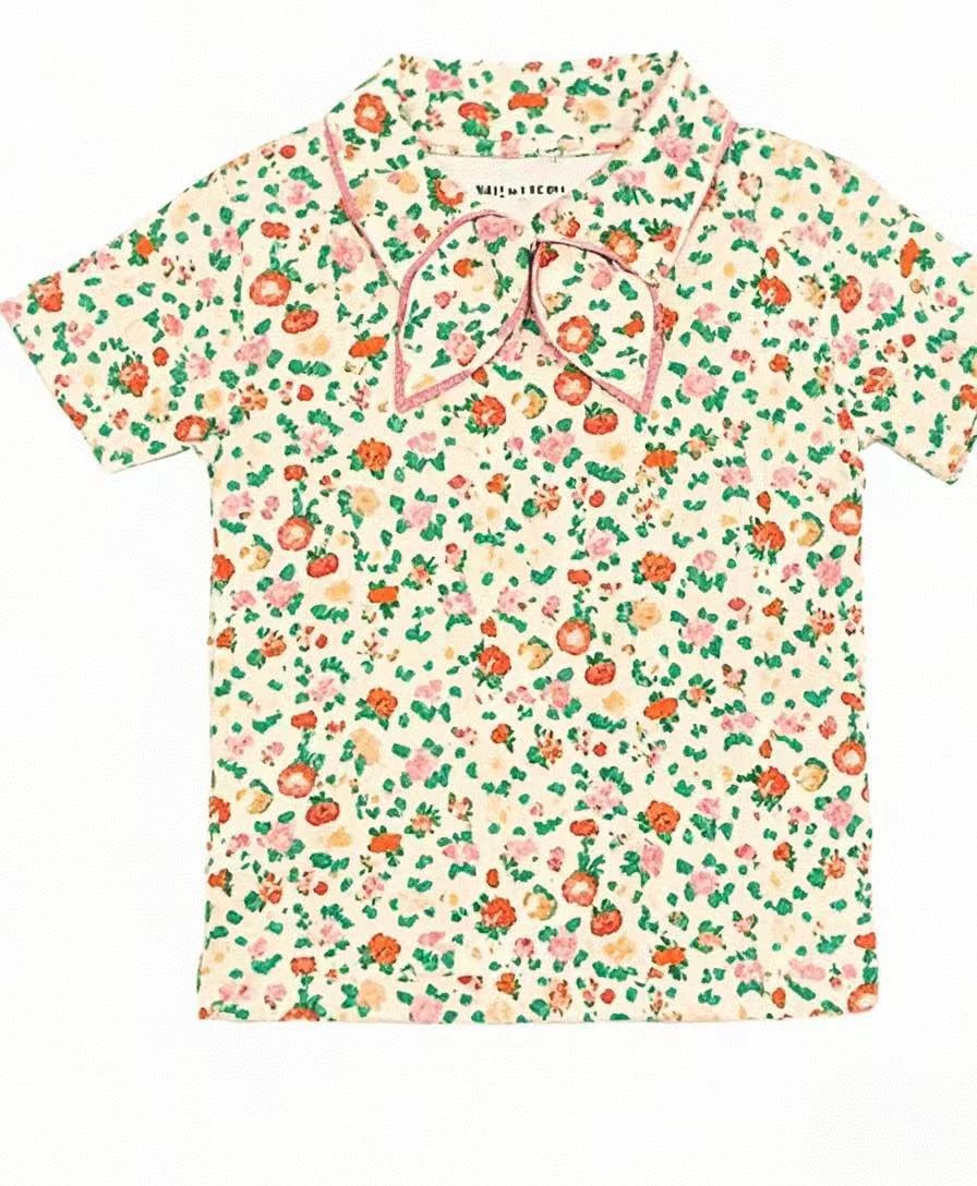 소녀 꽃 클래식 작은 나비 넥타이 짧은 소매 ins2025 봄과 여름 mp 시리즈