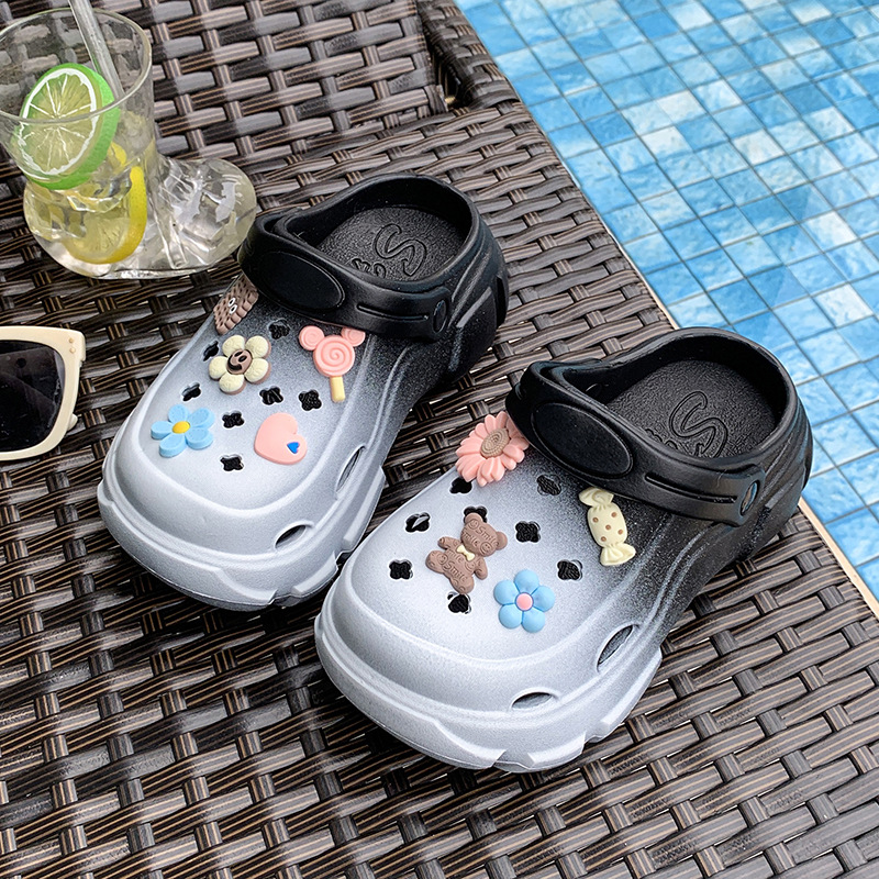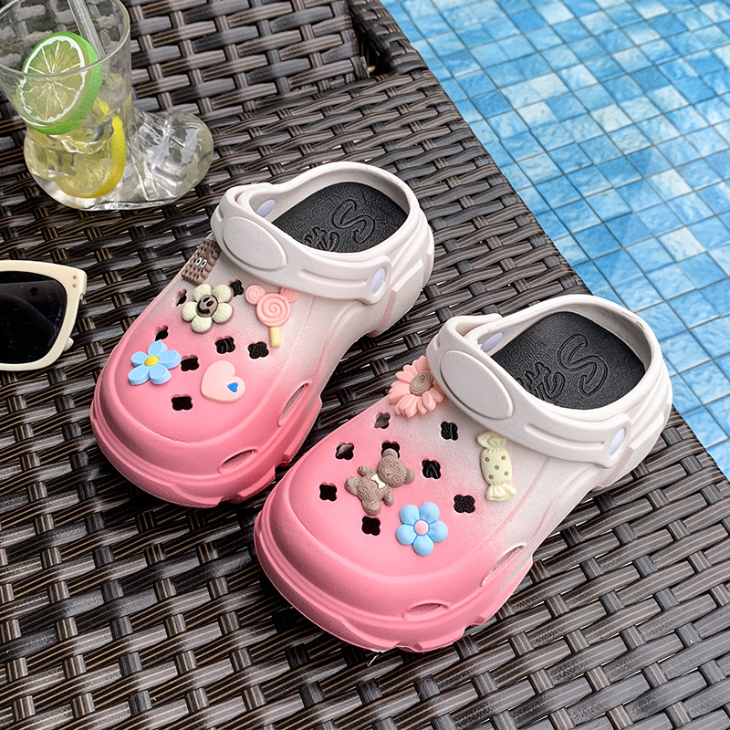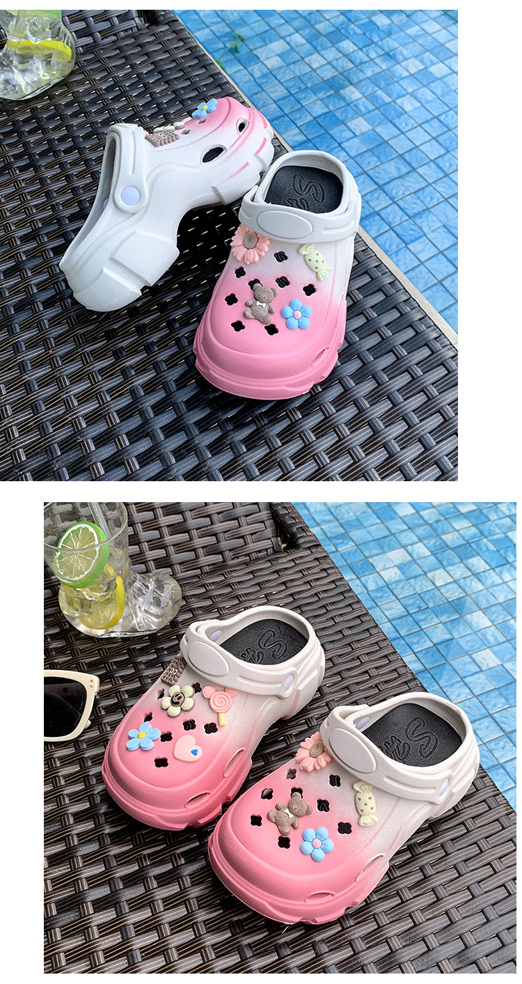 소녀 EVA 홀 신발 2025 여름 귀여운 올 매치 투웨어 신발 소프트 솔과 탑 커버 비치 샌들