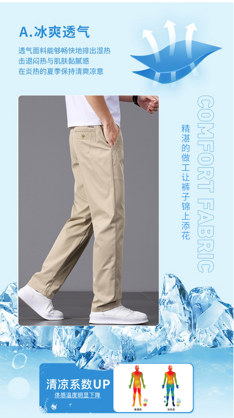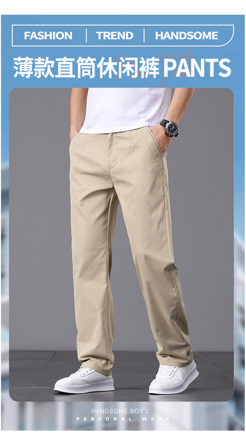 편안한 퓨어 선 캐주얼 바지 남성용 느슨한 스트레이트 바지 2025 여름 얇은 비 탄성 느슨한 스트레이트 바지 남성용스토어 가기
