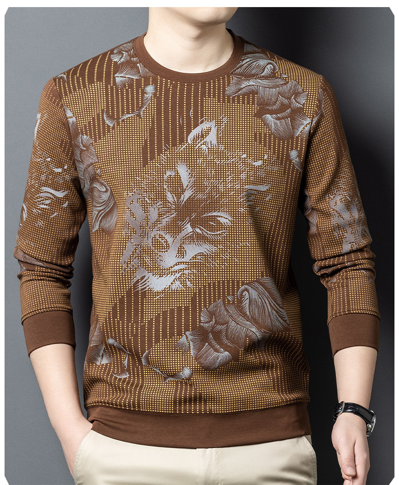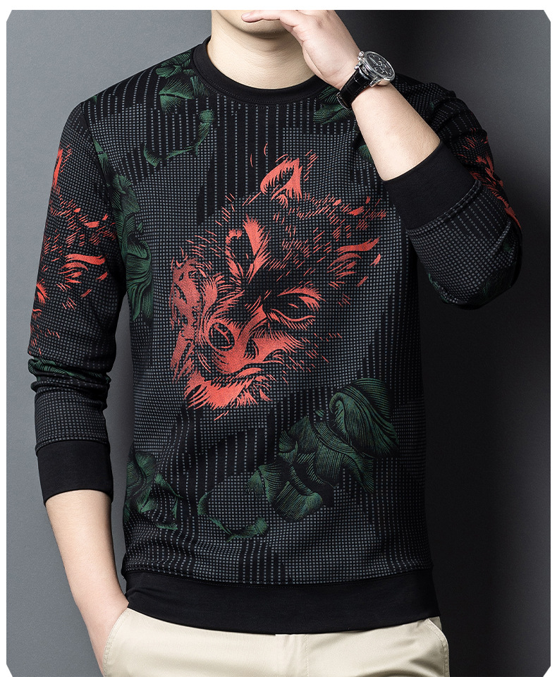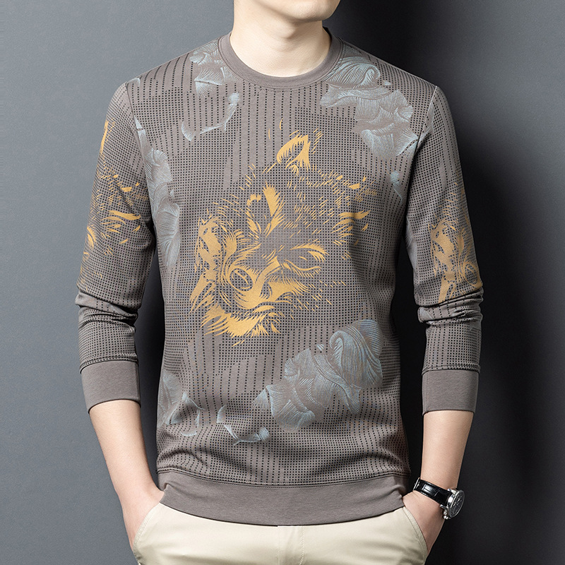 봄과 가을 2025 새로운 한국식 긴 소매 인쇄 간단한 라운드 넥 탑 패션 유행 캐주얼 스웨터베이스 셔츠