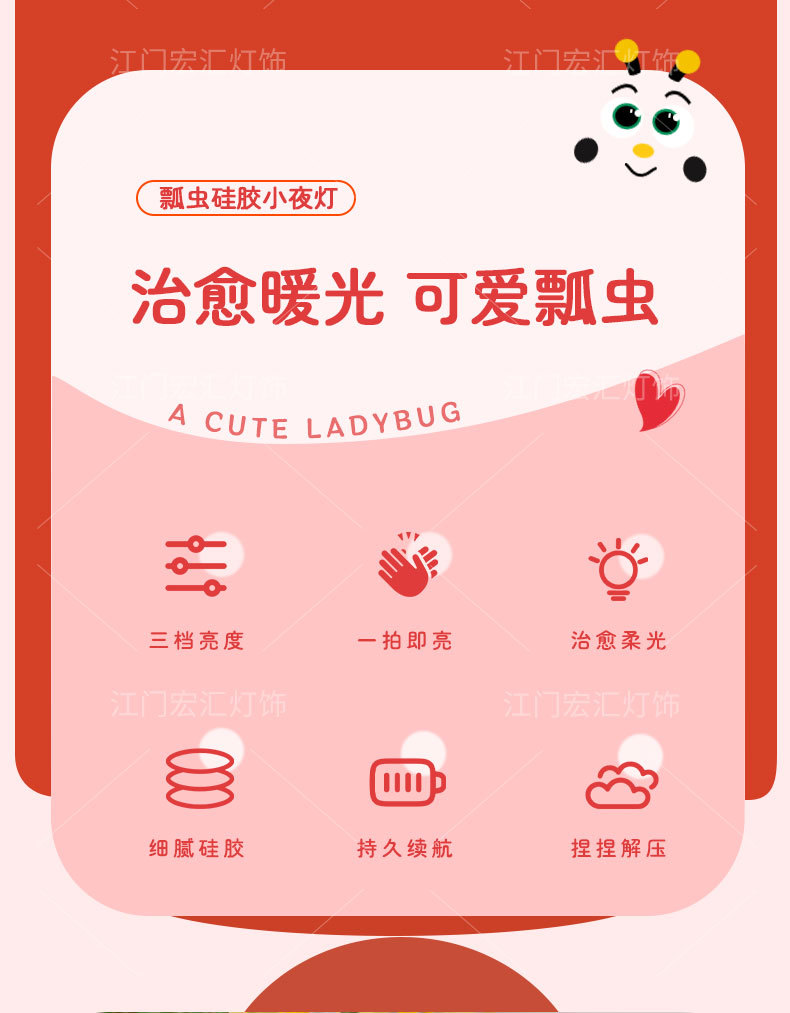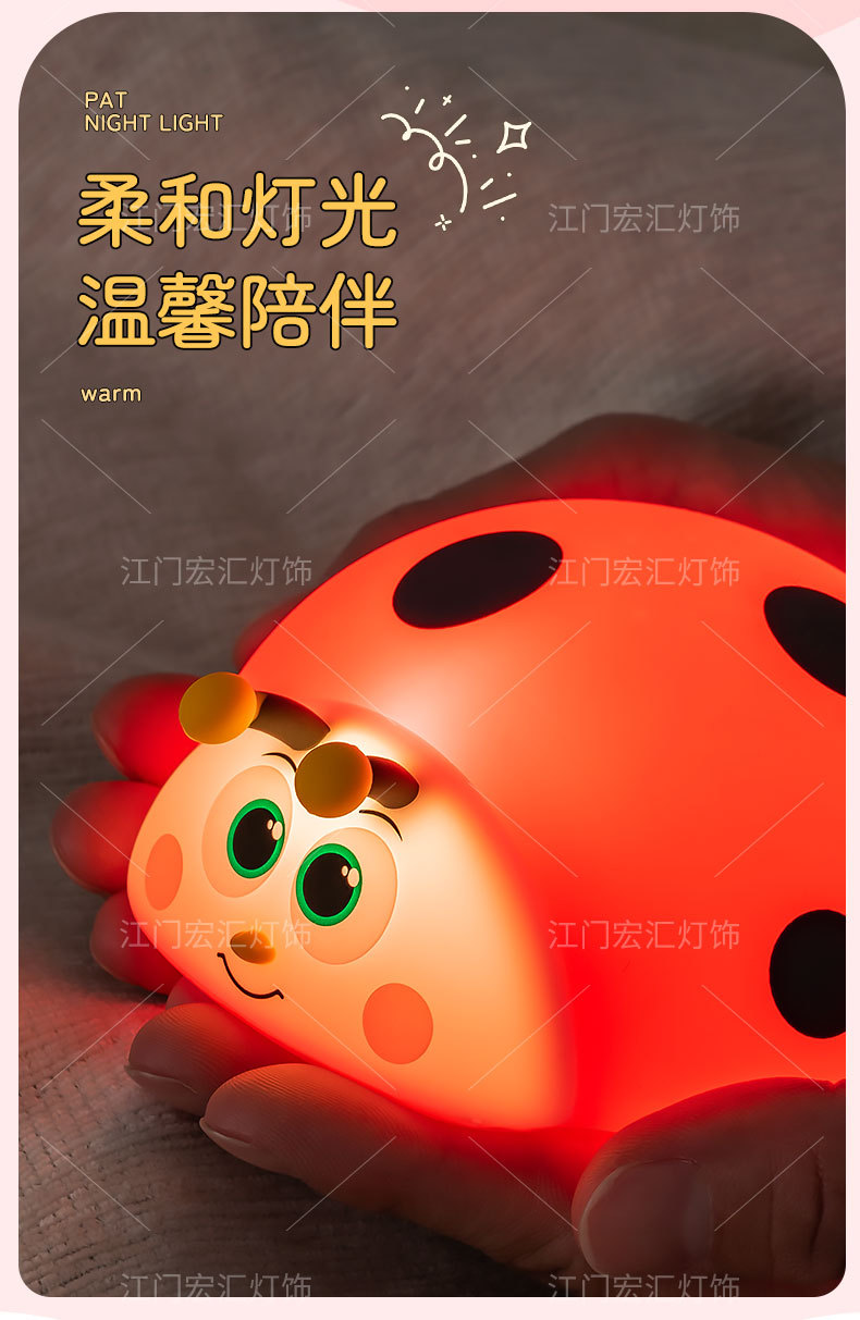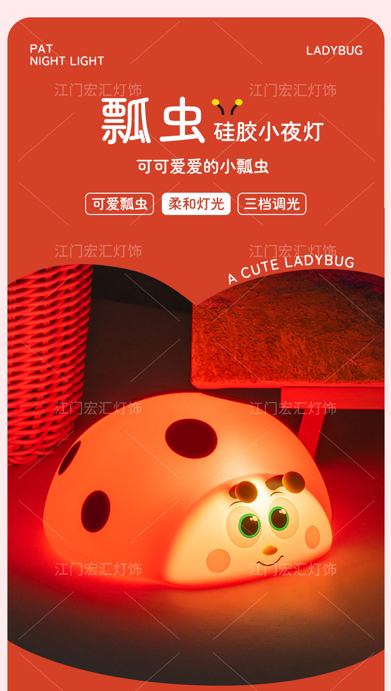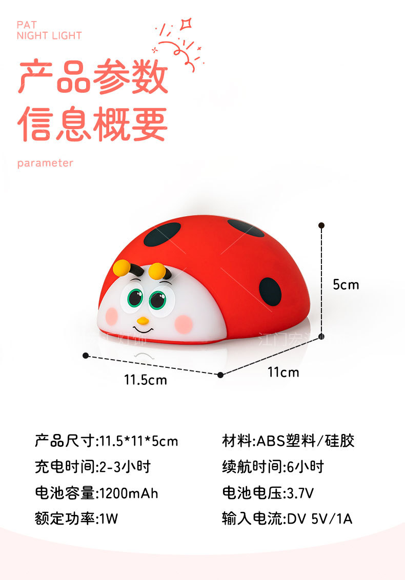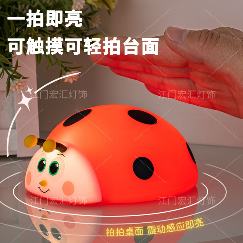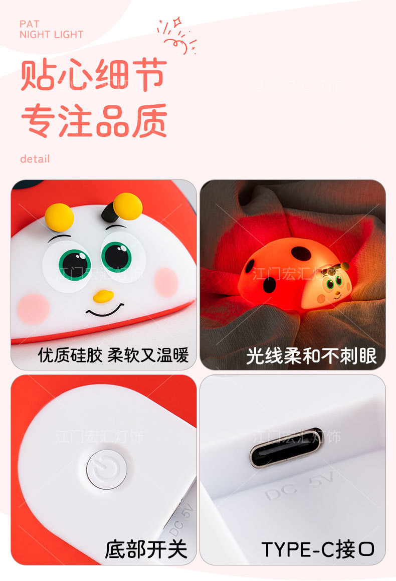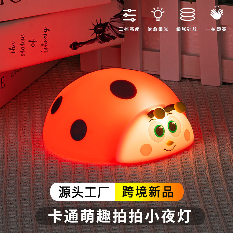 국경을 넘는 선물 일곱별 무당벌레 실리콘 패트 라이트 창의적인 침대 옆 장식품 충전식 LED 5V 분위기등 야간등스토어 가기