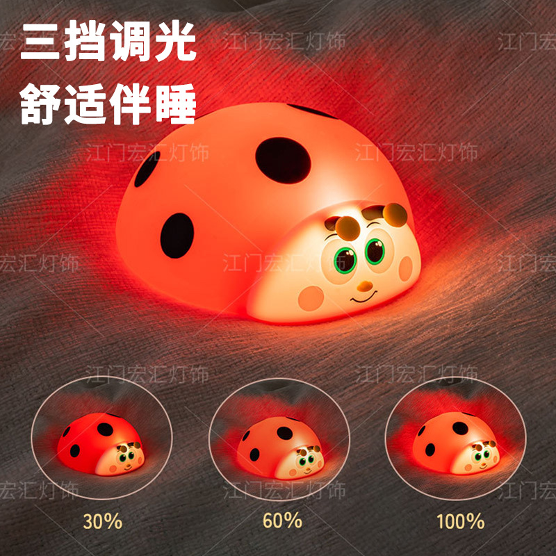 국경을 넘는 선물 일곱별 무당벌레 실리콘 패트 라이트 창의적인 침대 옆 장식품 충전식 LED 5V 분위기등 야간등