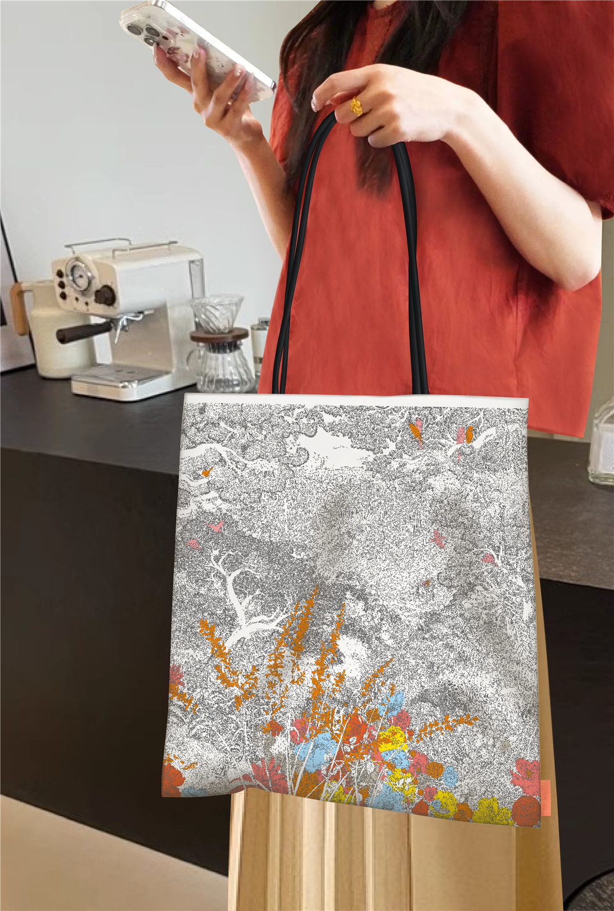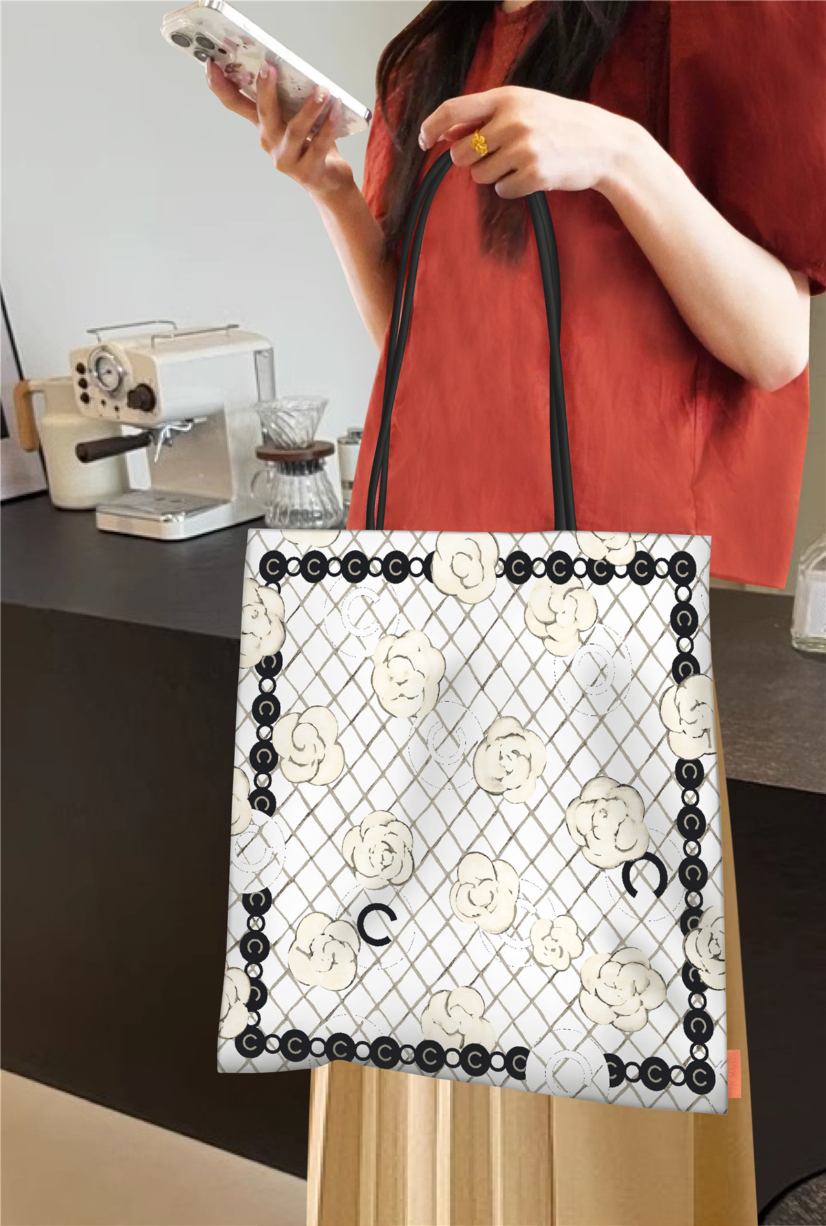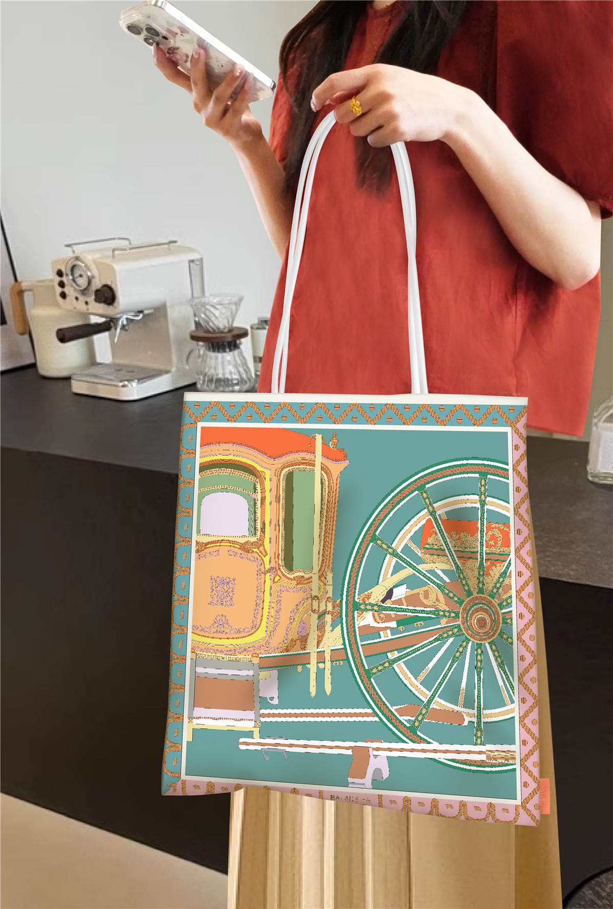 环保数码印花 搭配超纤牛皮提手