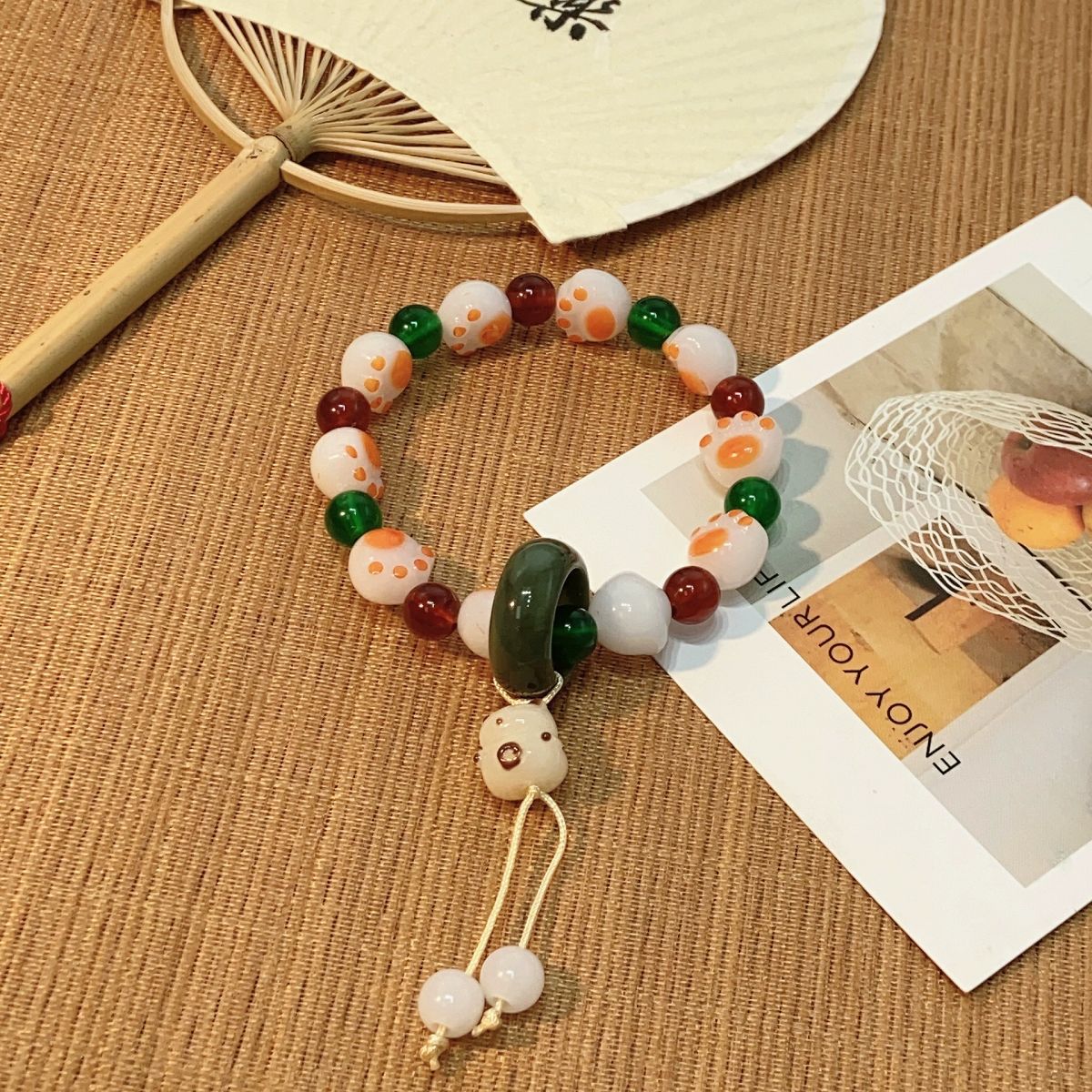 새로운 중국 스타일 작은 라임 보디 루트 조각 고양이 발톱 구슬 팔찌 여성용 수제 묵주 팔찌 올 매치 팔찌스토어 가기