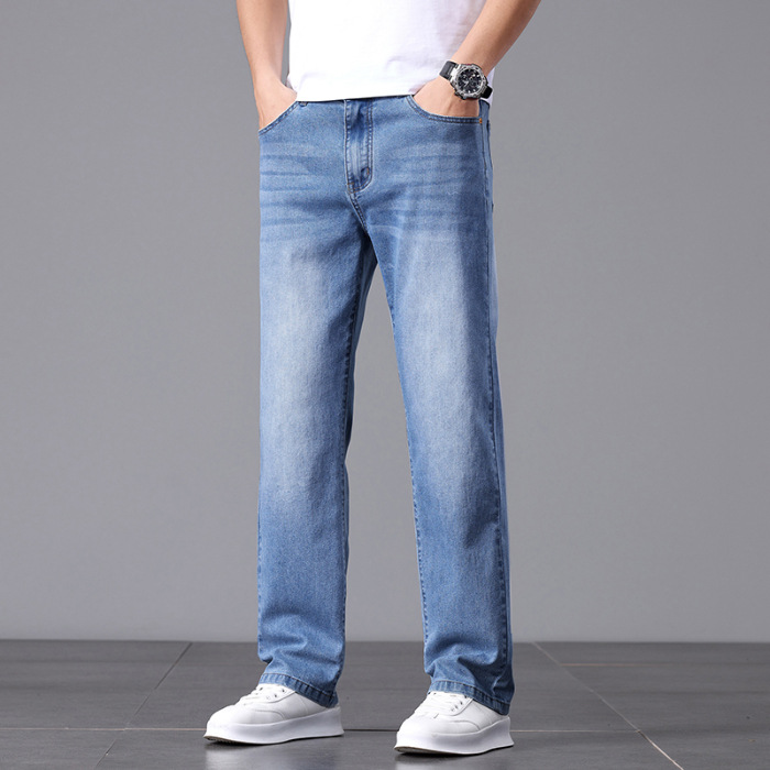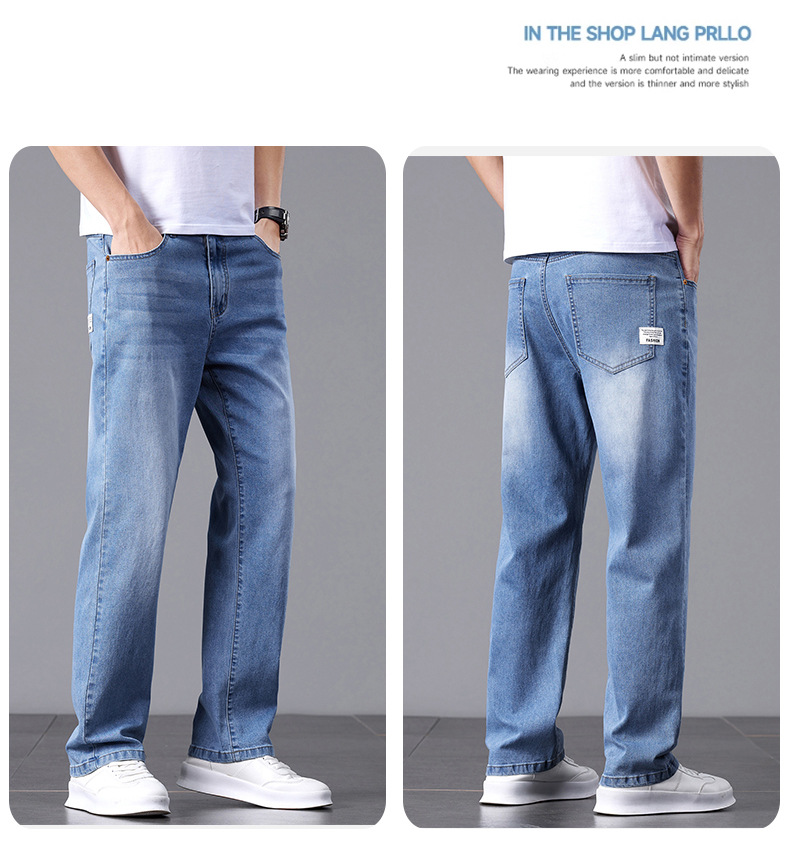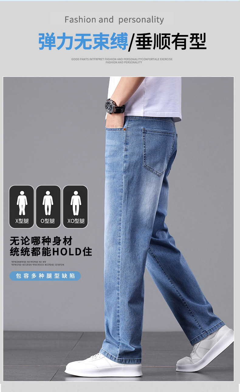 새로운 올 매치 청바지 남성용 얇은 봄과 여름 코튼 탄성 하이 엔드 루즈 소프트 수직 스트레이트 슬리밍 팬츠 남성용스토어 가기