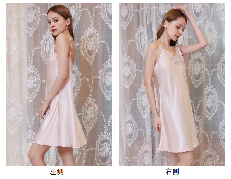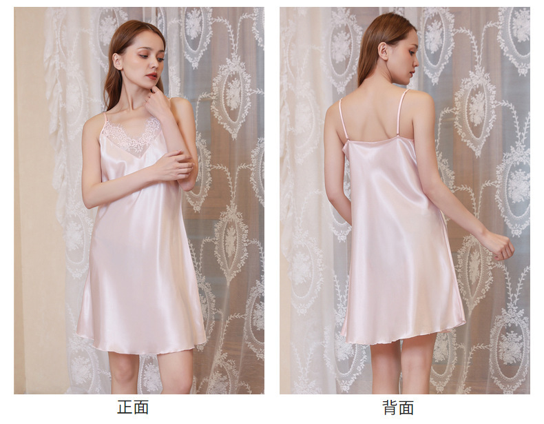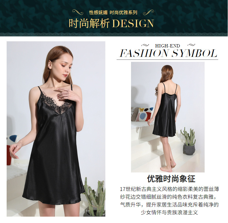 국경 간 플러스 사이즈 여름 얇은 실크 파자마 감성 아름다운 백 V 넥 레이스 레이스 여성 홈 슬링 나이트 가운
