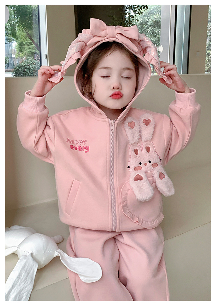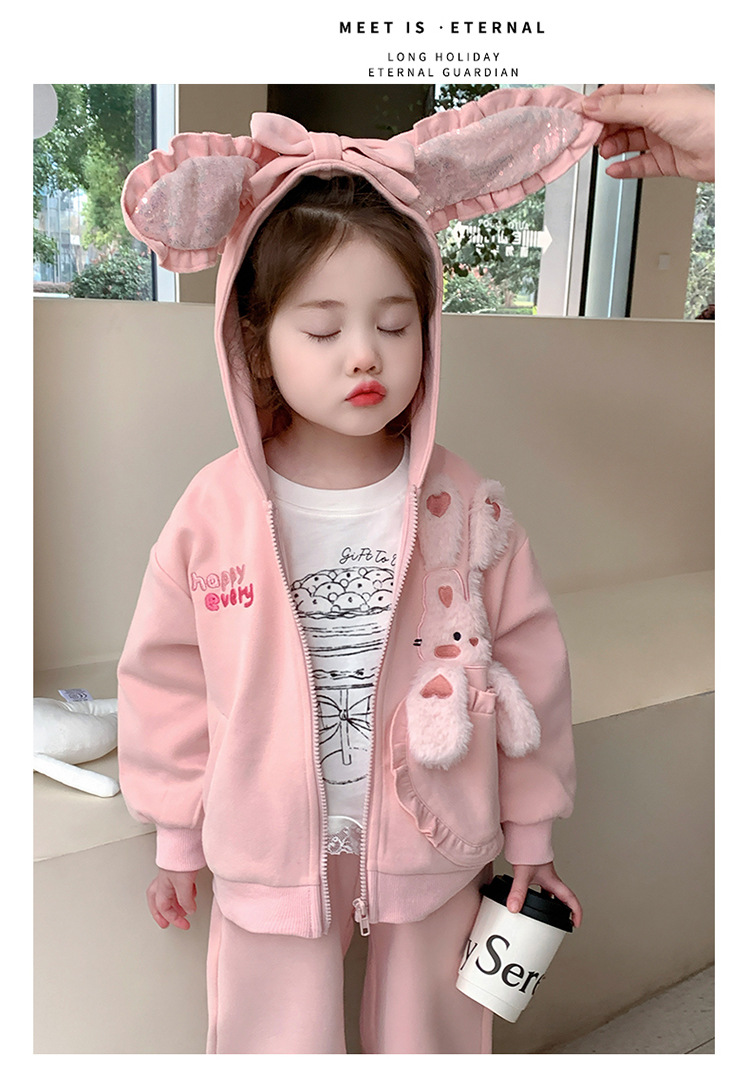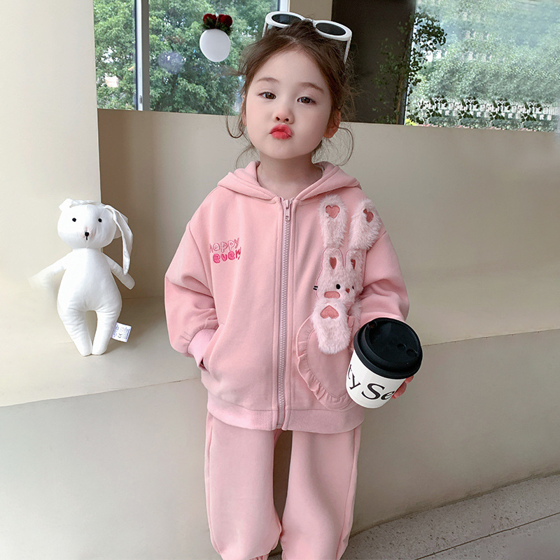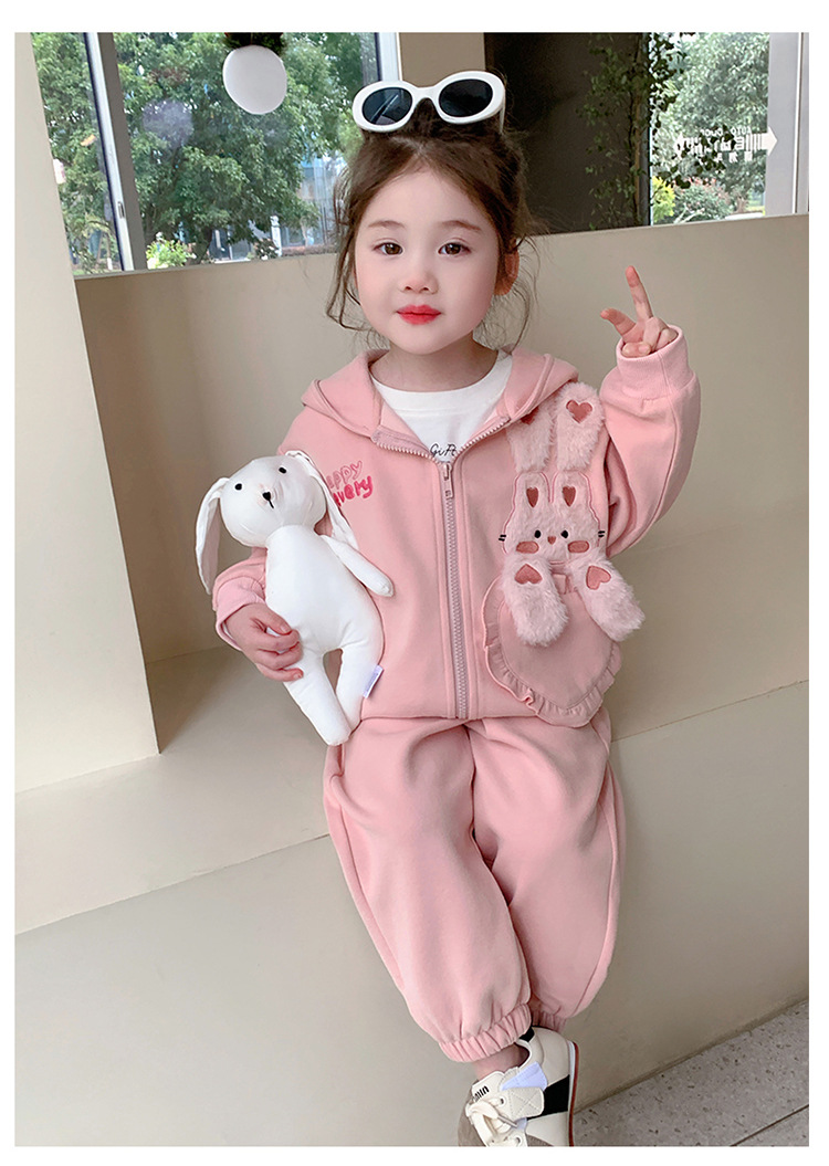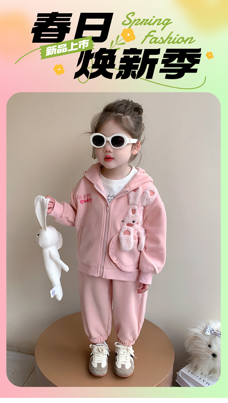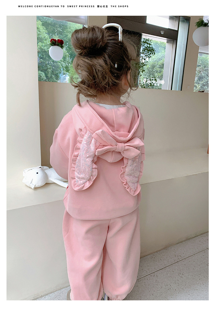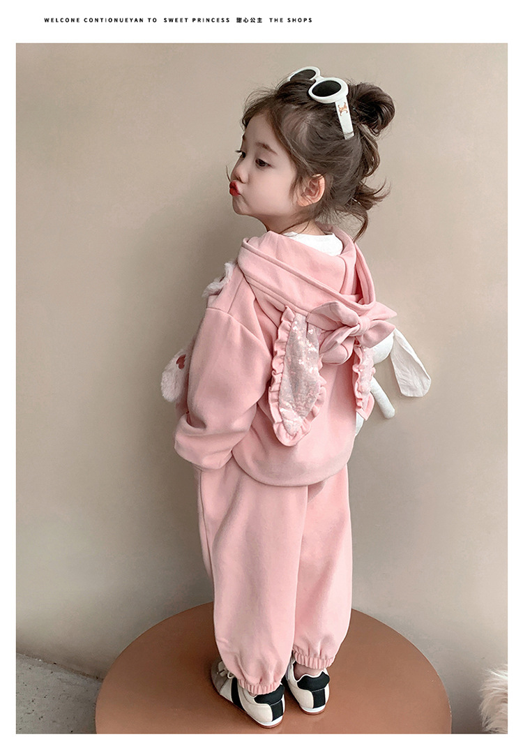 소녀의 토끼 귀 속편 땀 세트 봄과 가을 2025 새로운 패션 소녀 스포츠 캐주얼 투피스 세트스토어 가기