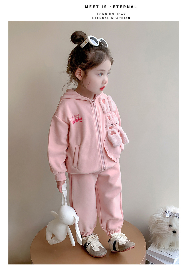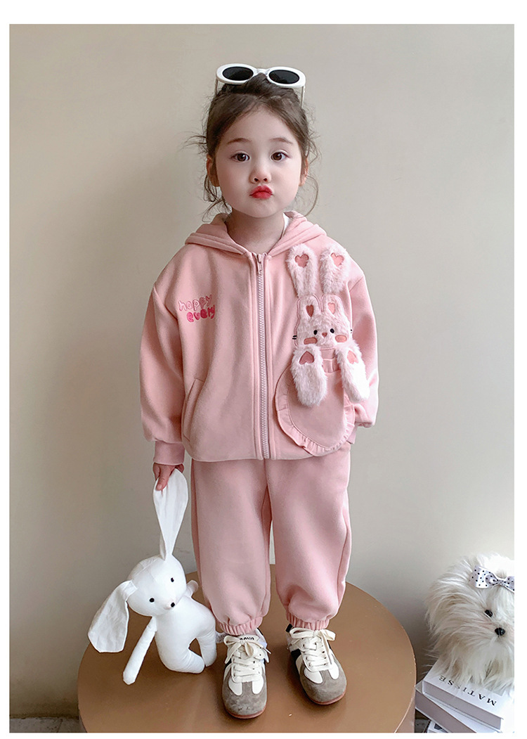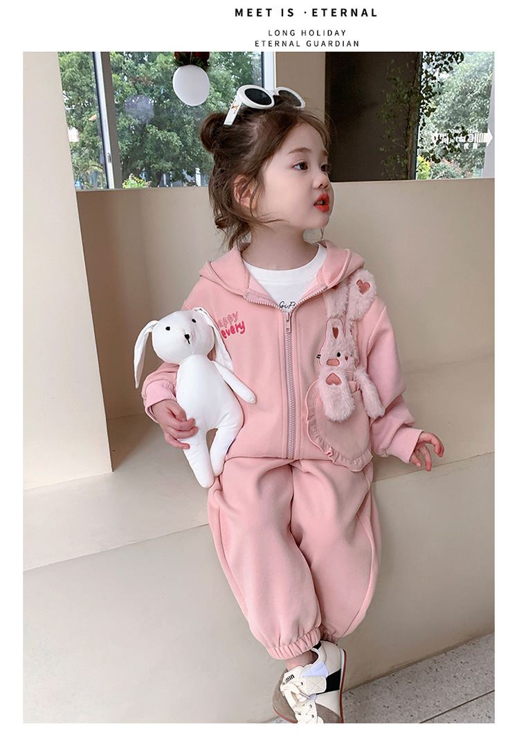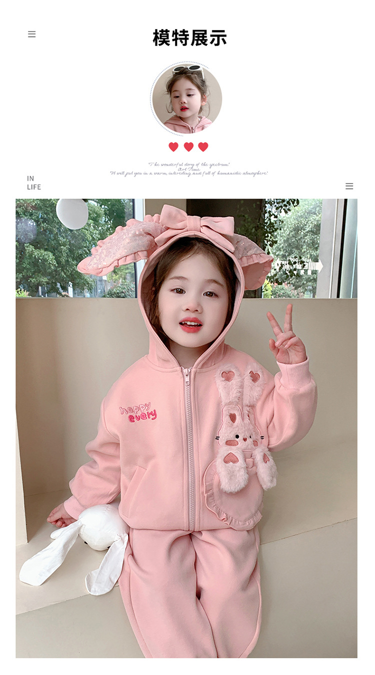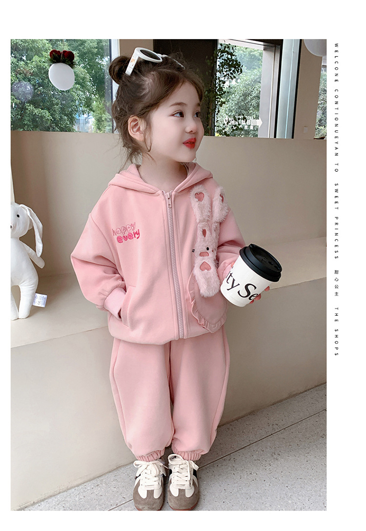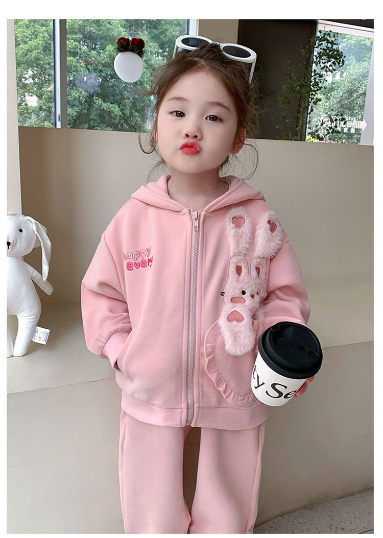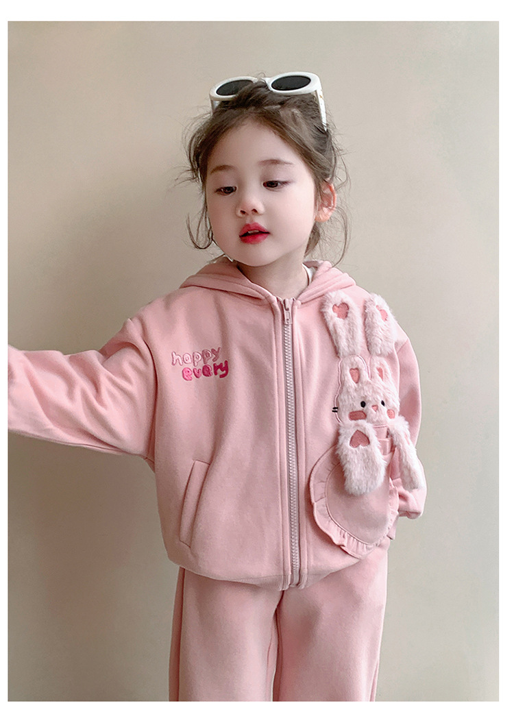 소녀의 토끼 귀 속편 땀 세트 봄과 가을 2025 새로운 패션 소녀 스포츠 캐주얼 투피스 세트스토어 가기