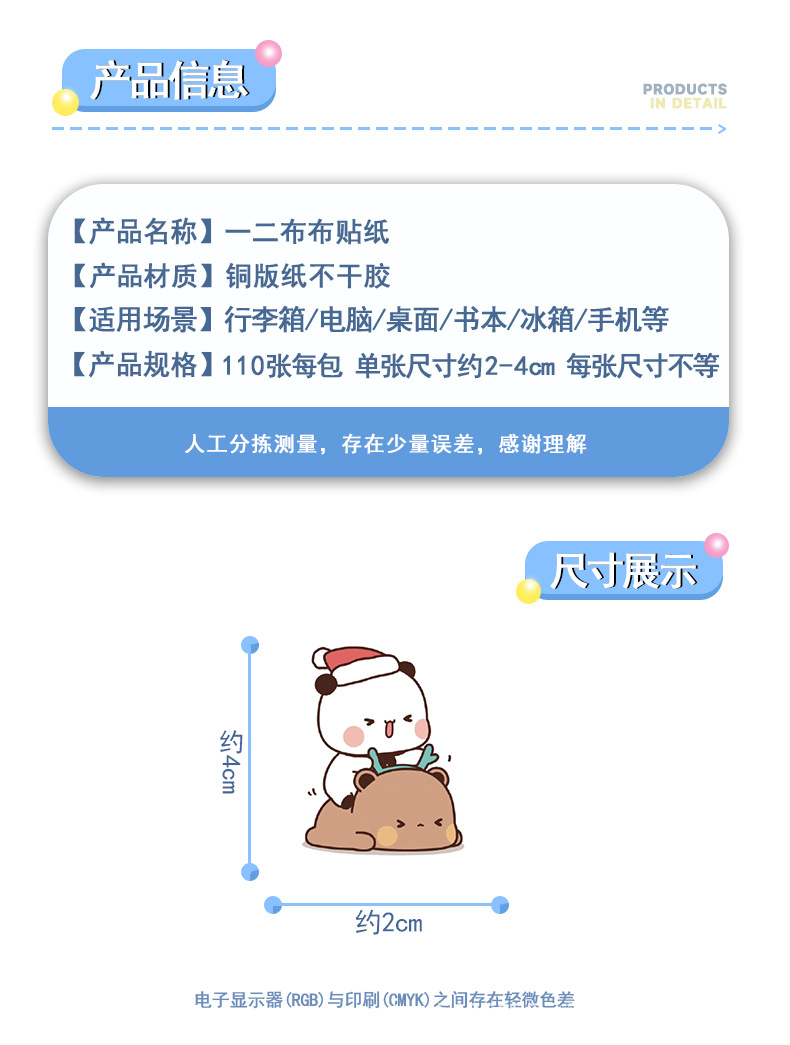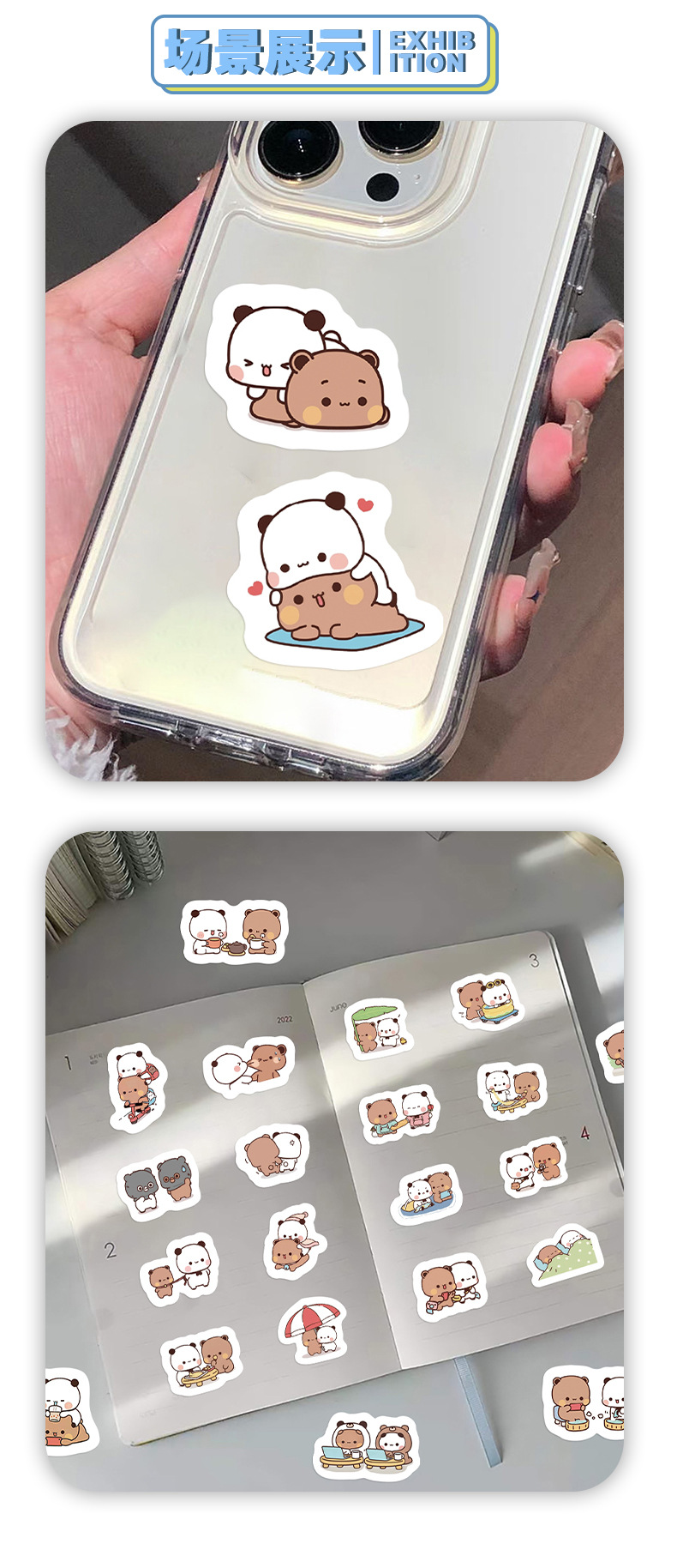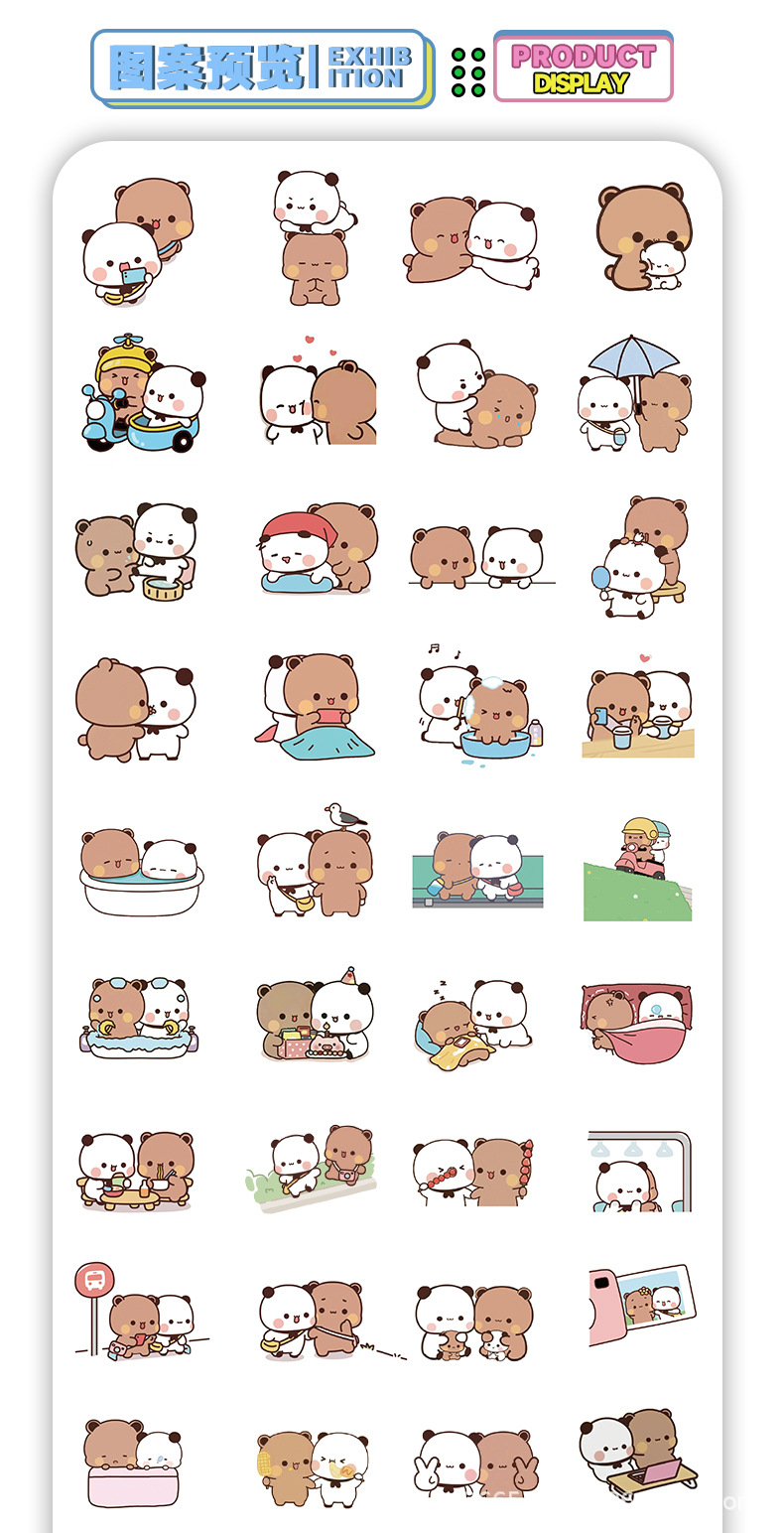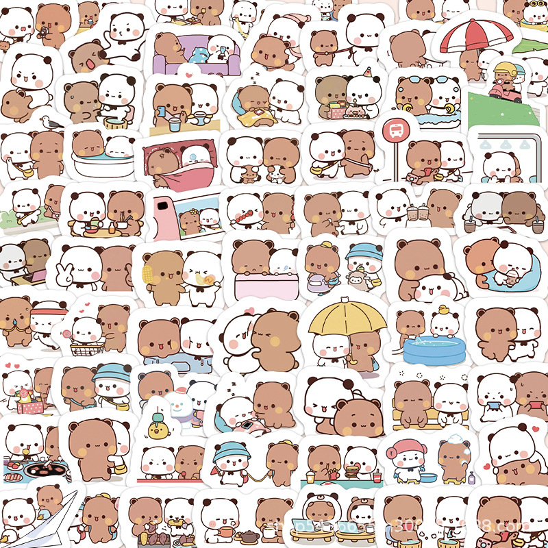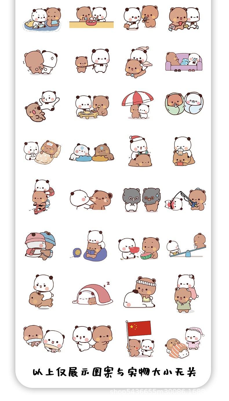 110 만화 귀여운 두 천 스티커 팬더 귀여운 스티커 휴대 전화 DIY 장식 손 계정 스티커스토어 가기