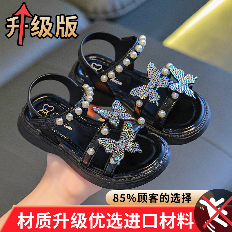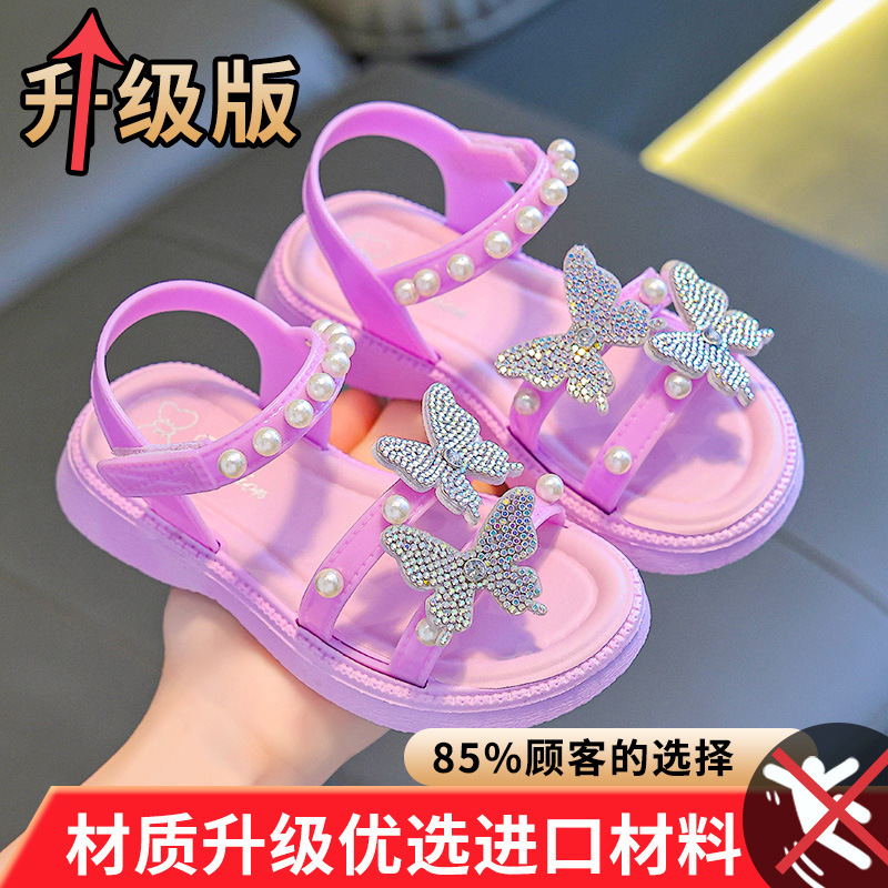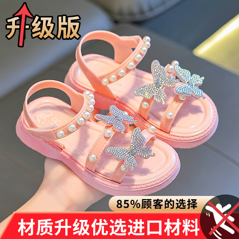 2025 새로운 소녀 샌들 여름 활 부드러운 바닥 어린이 공주 신발 아기 여름 오픈 발가락 샌들 도매스토어 가기