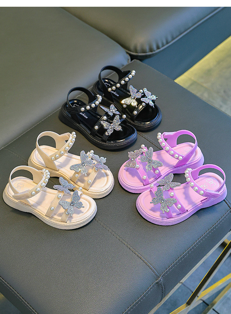 2025 새로운 소녀 샌들 여름 활 부드러운 바닥 어린이 공주 신발 아기 여름 오픈 발가락 샌들 도매