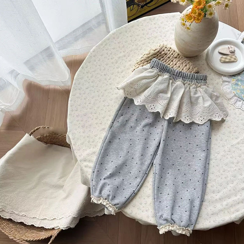 한국 소녀의 봄 가짜 투피스 레이스 땀 바지 2025 신작 여자 설문 조사 포인트 올매치 느슨한 다리 바지스토어 가기