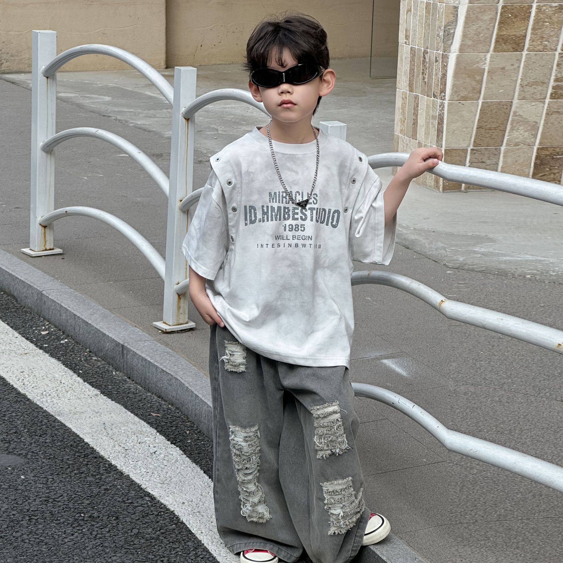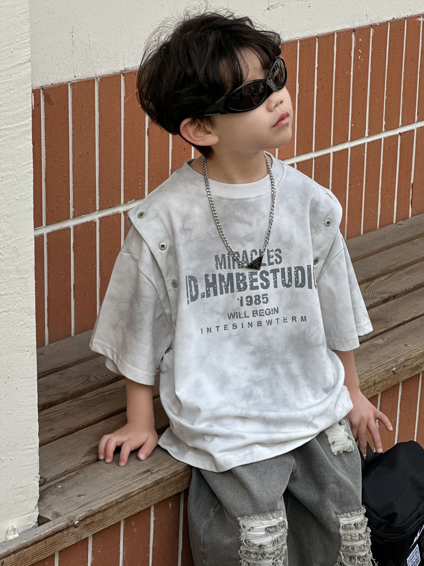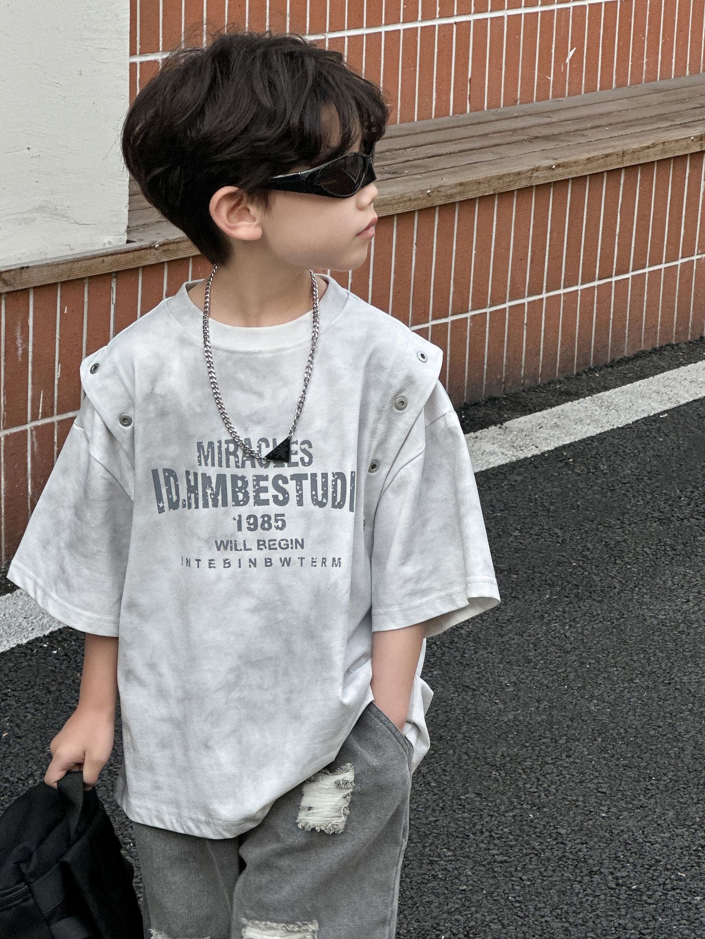 아동복 아동 티셔츠 2025 여름 새 스타일 소년 한국 스타일 라운드 넥 탑 중소형 아동 여름 의류 소년 반팔 유행스토어 가기