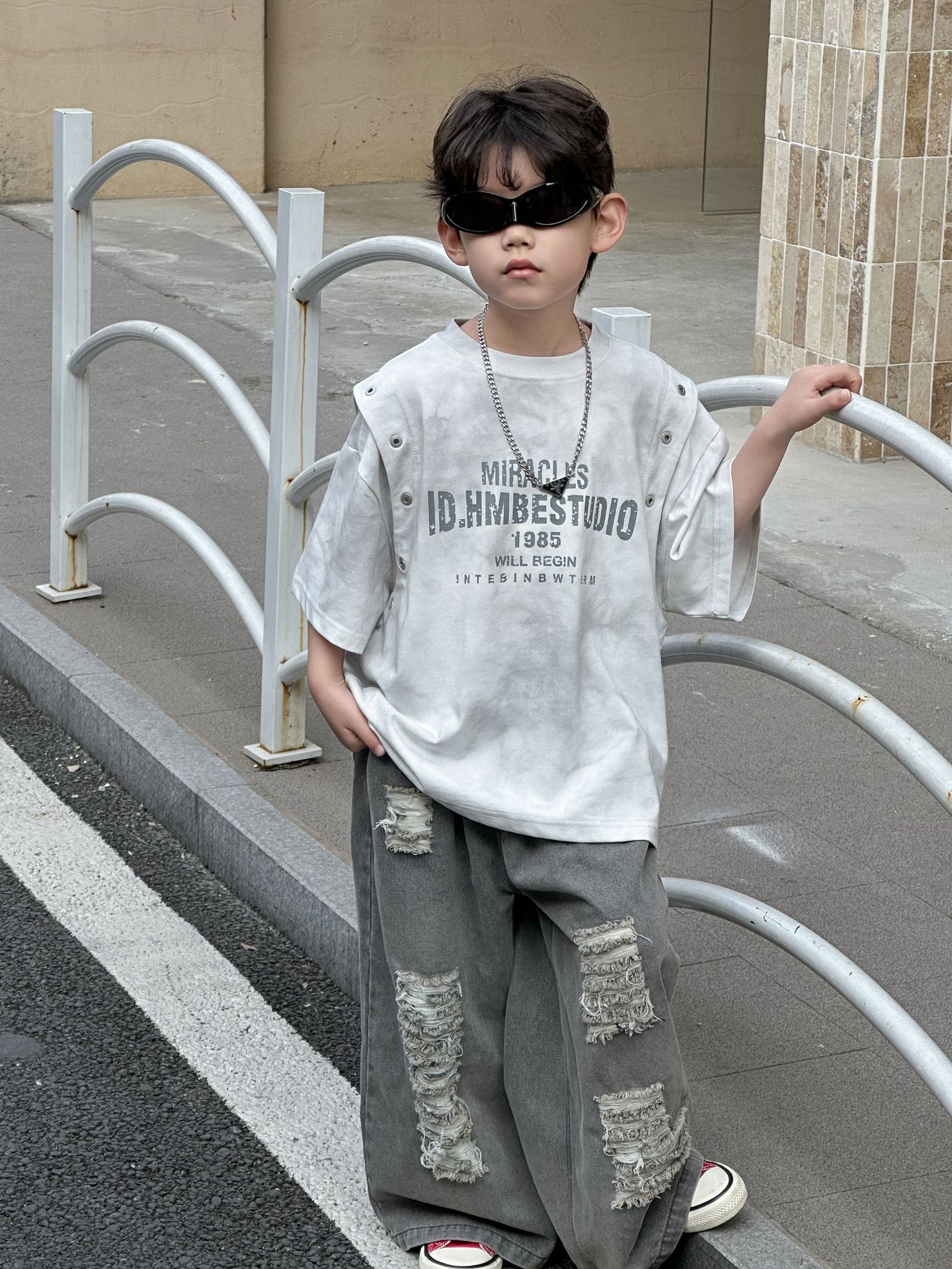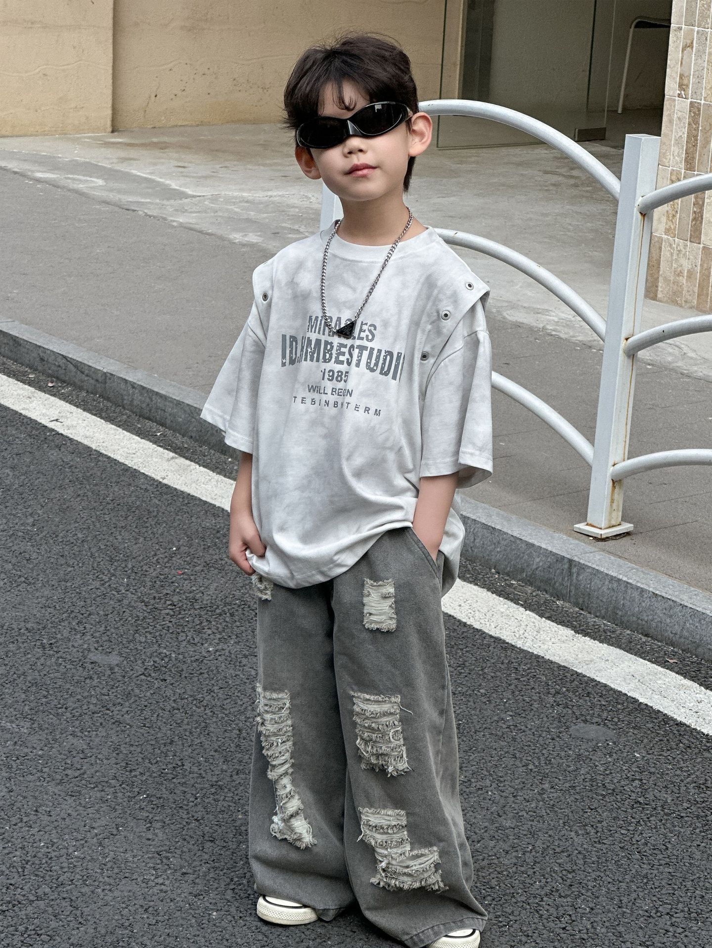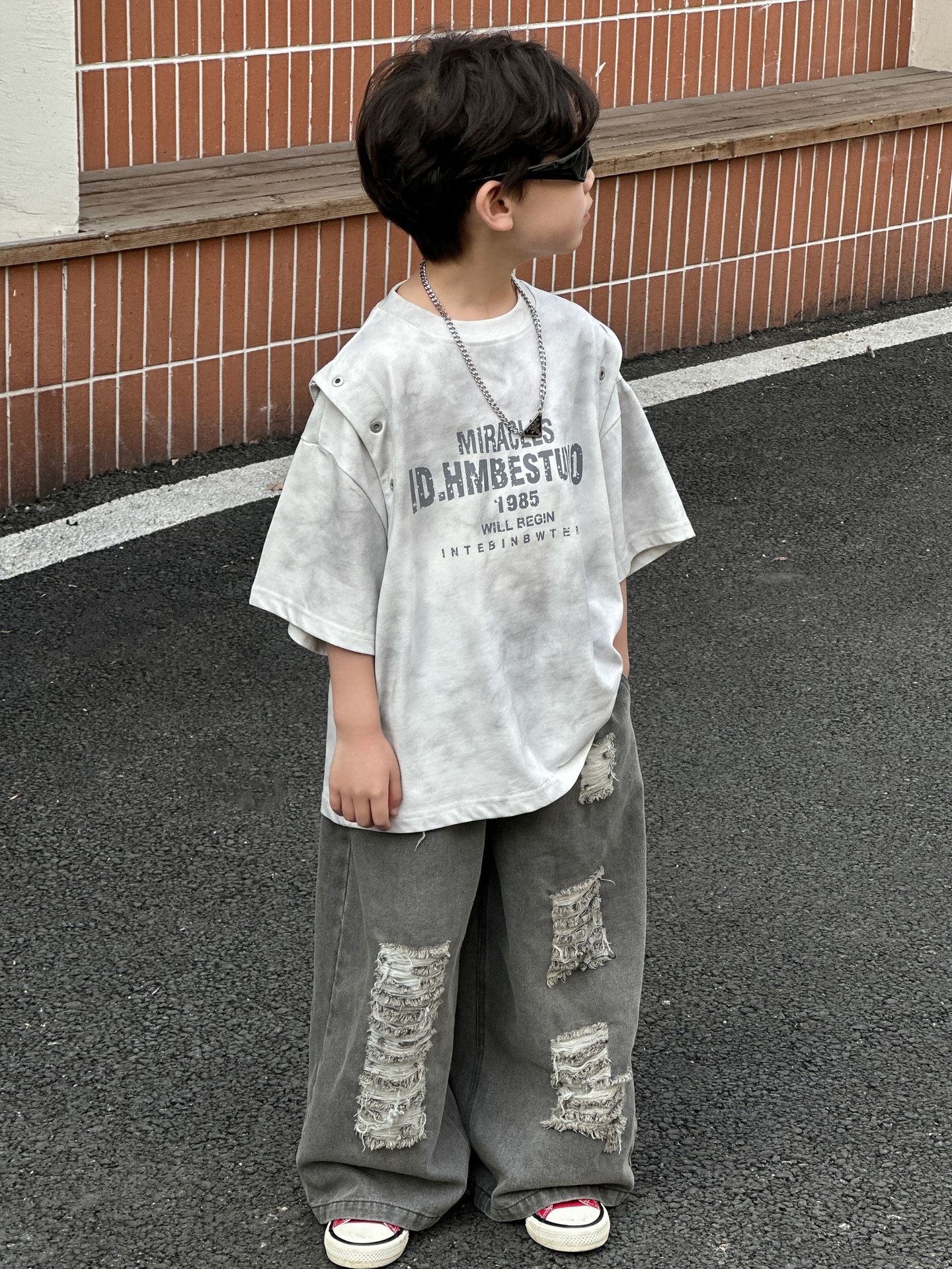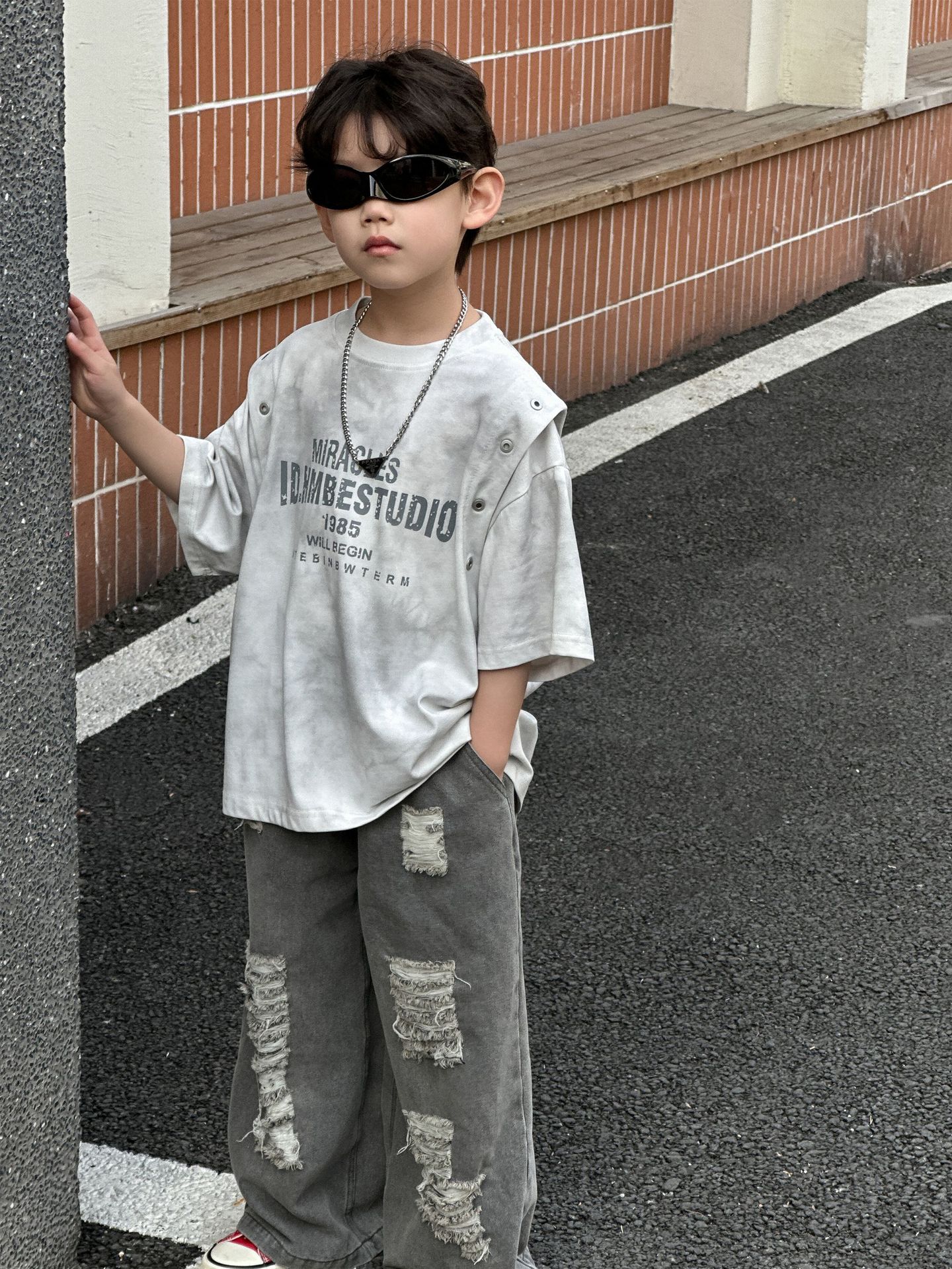 아동복 아동 티셔츠 2025 여름 새 스타일 소년 한국 스타일 라운드 넥 탑 중소형 아동 여름 의류 소년 반팔 유행스토어 가기