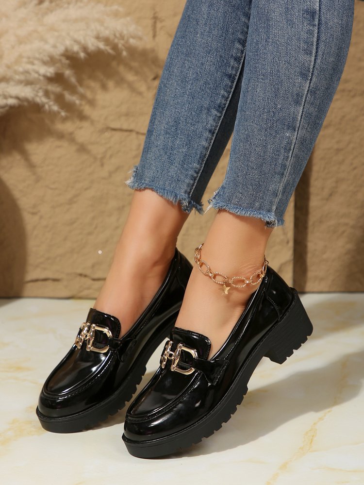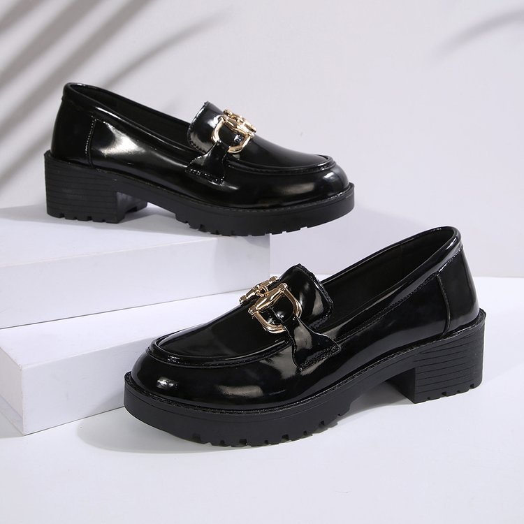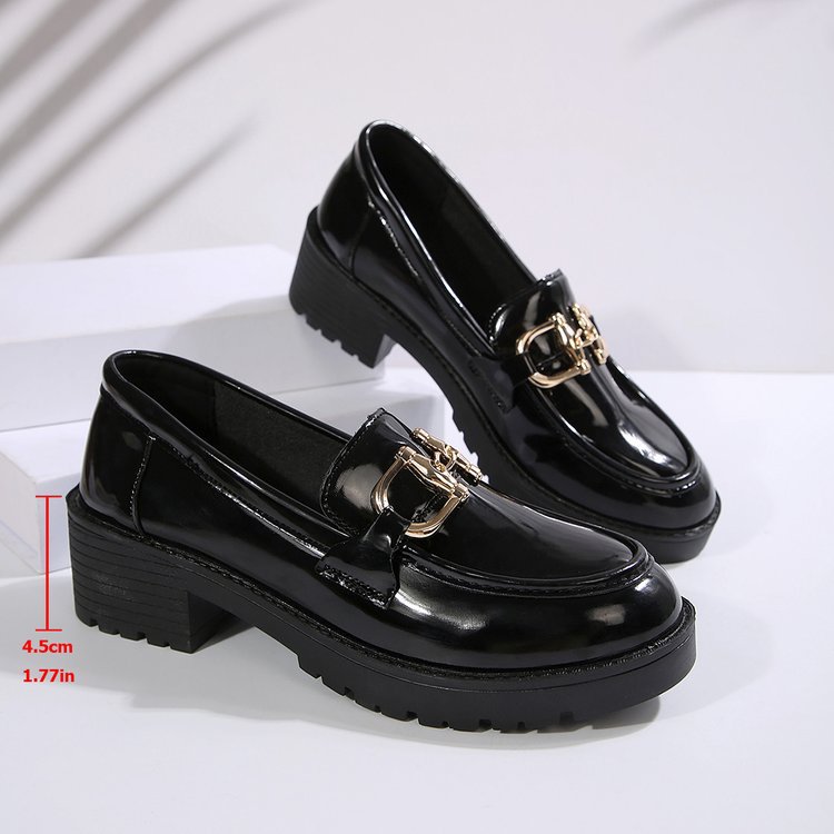 영국 스타일의 작은 가죽 신발 여성의 2025 새로운 두꺼운 힐 라운드 토 싱글 레이어 신발 여자 신발 두꺼운 밑창 신발 봄과 가을 올 매치 로퍼스토어 가기