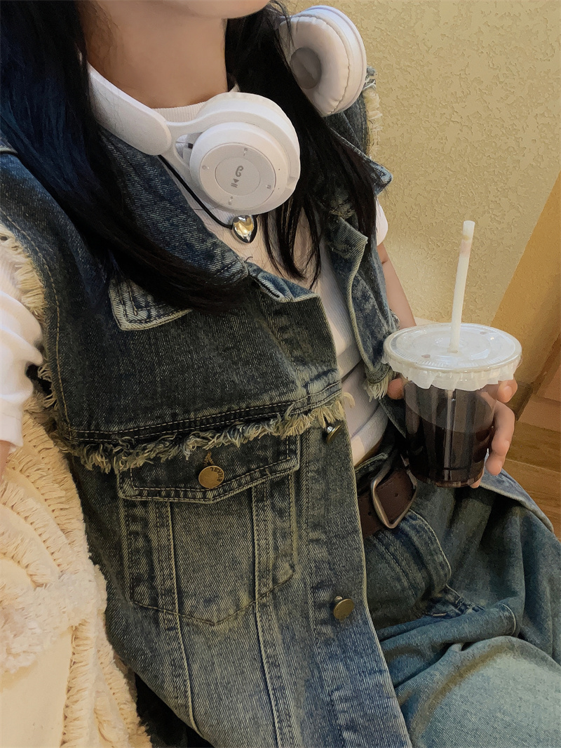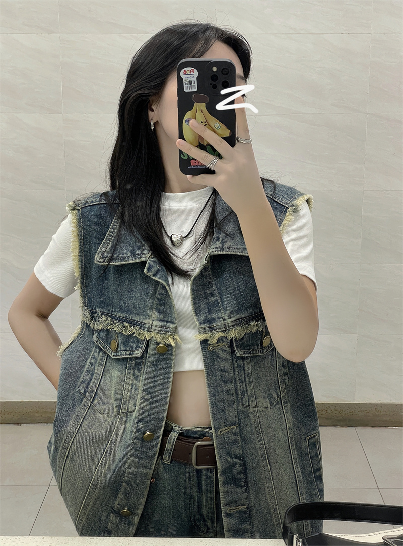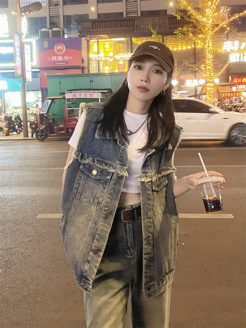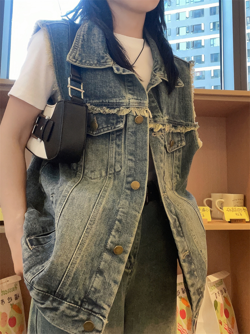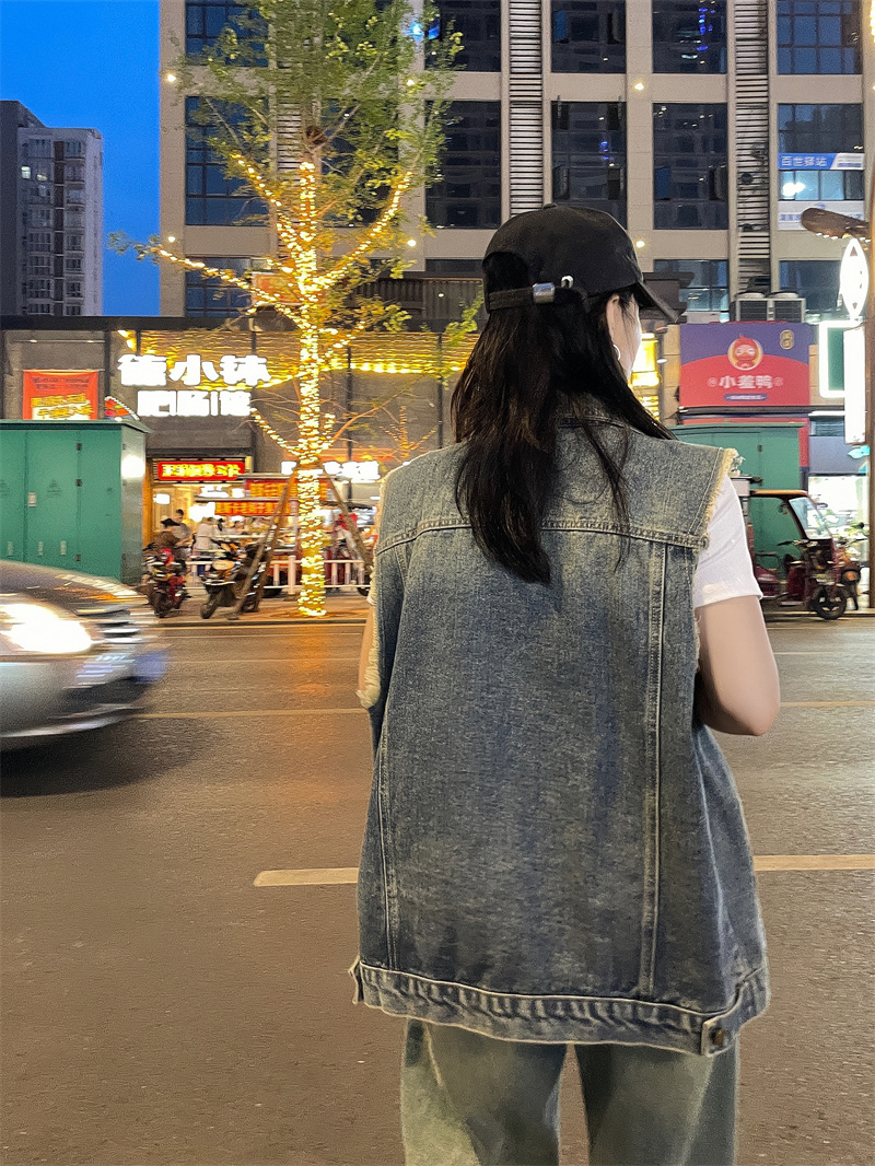 아메리칸 스타일 레트로 데님 조끼 코트 여성 봄 2025 새로운 도착 디자인 감각 느슨한 민소매스토어 가기