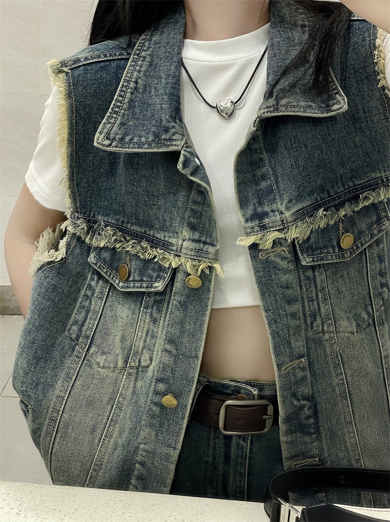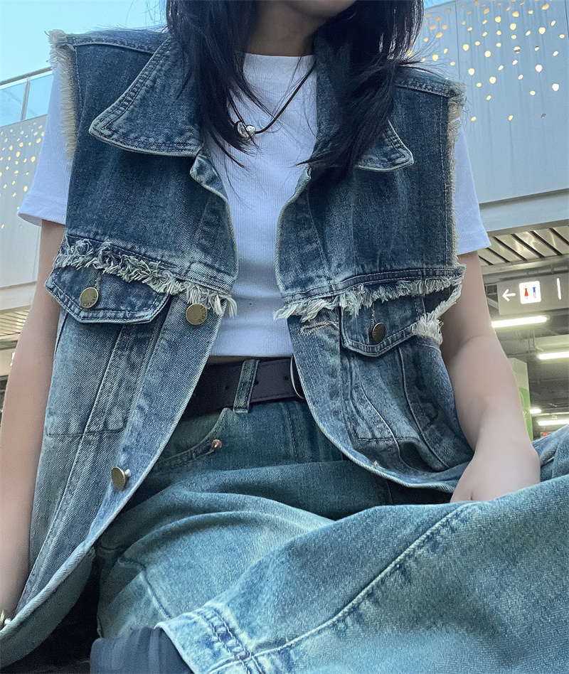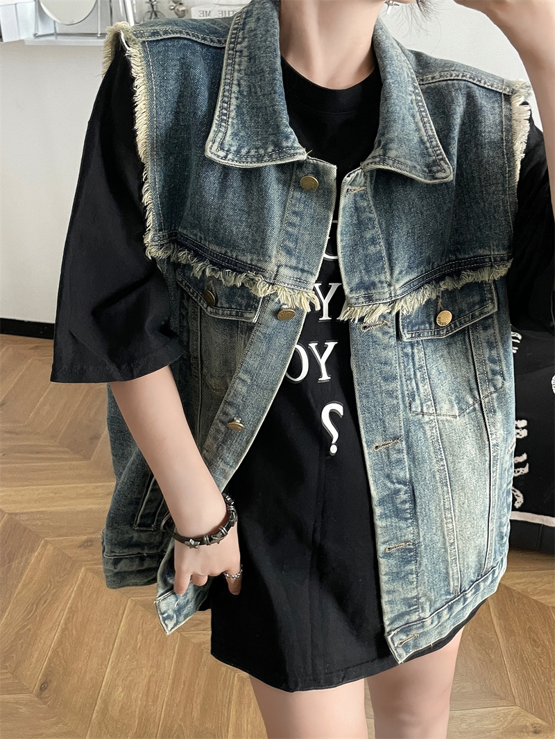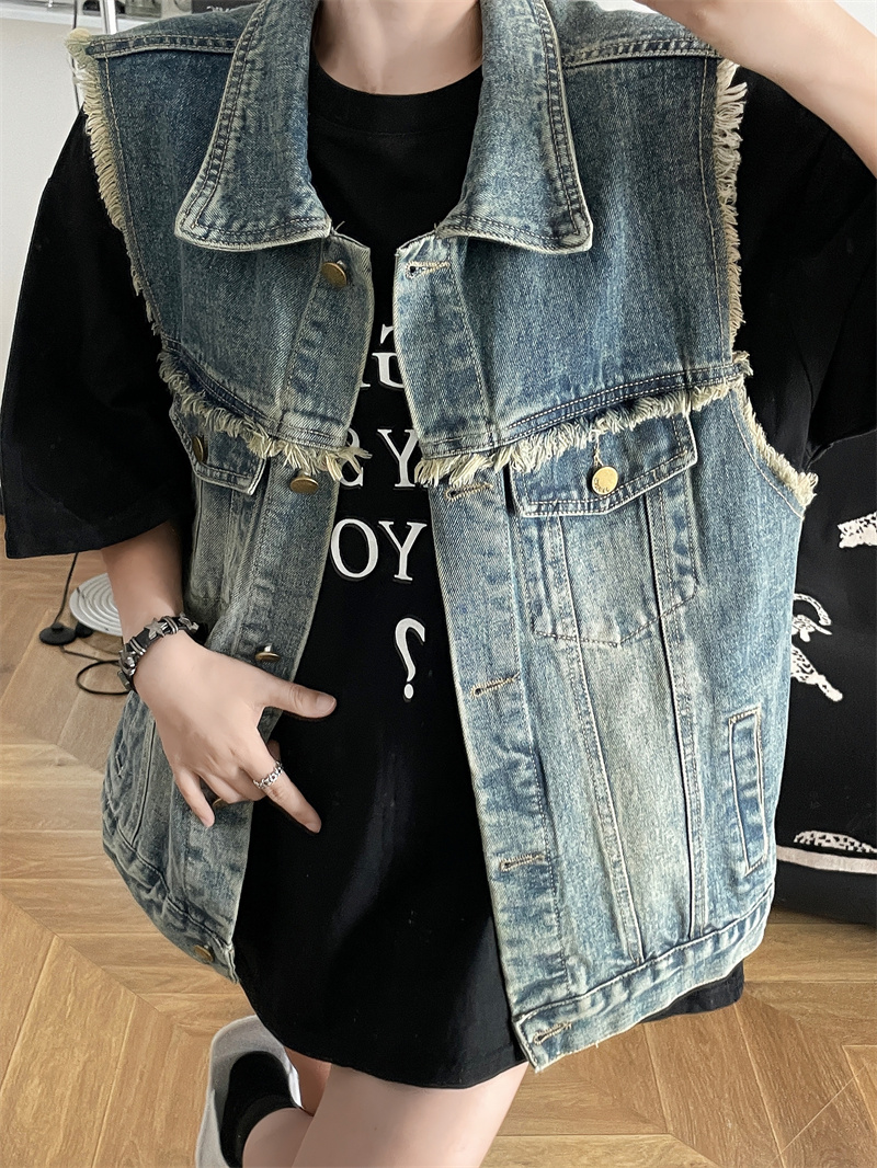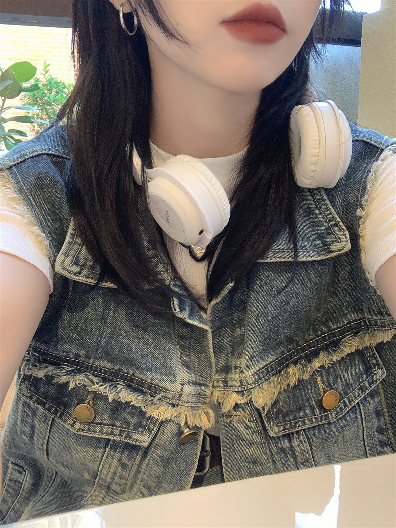 아메리칸 스타일 레트로 데님 조끼 코트 여성 봄 2025 새로운 도착 디자인 감각 느슨한 민소매스토어 가기