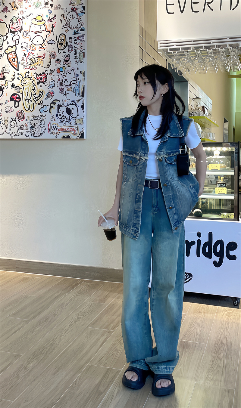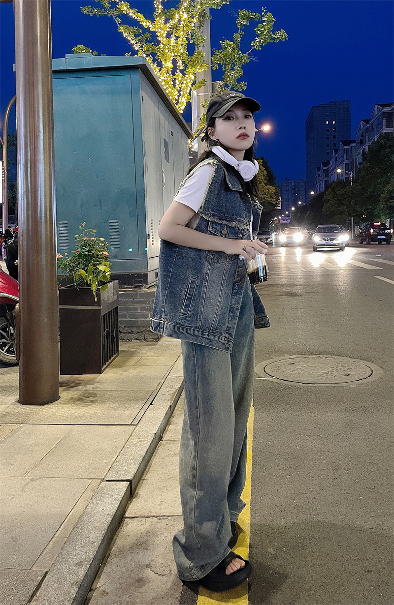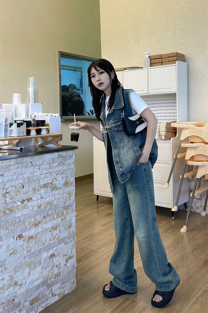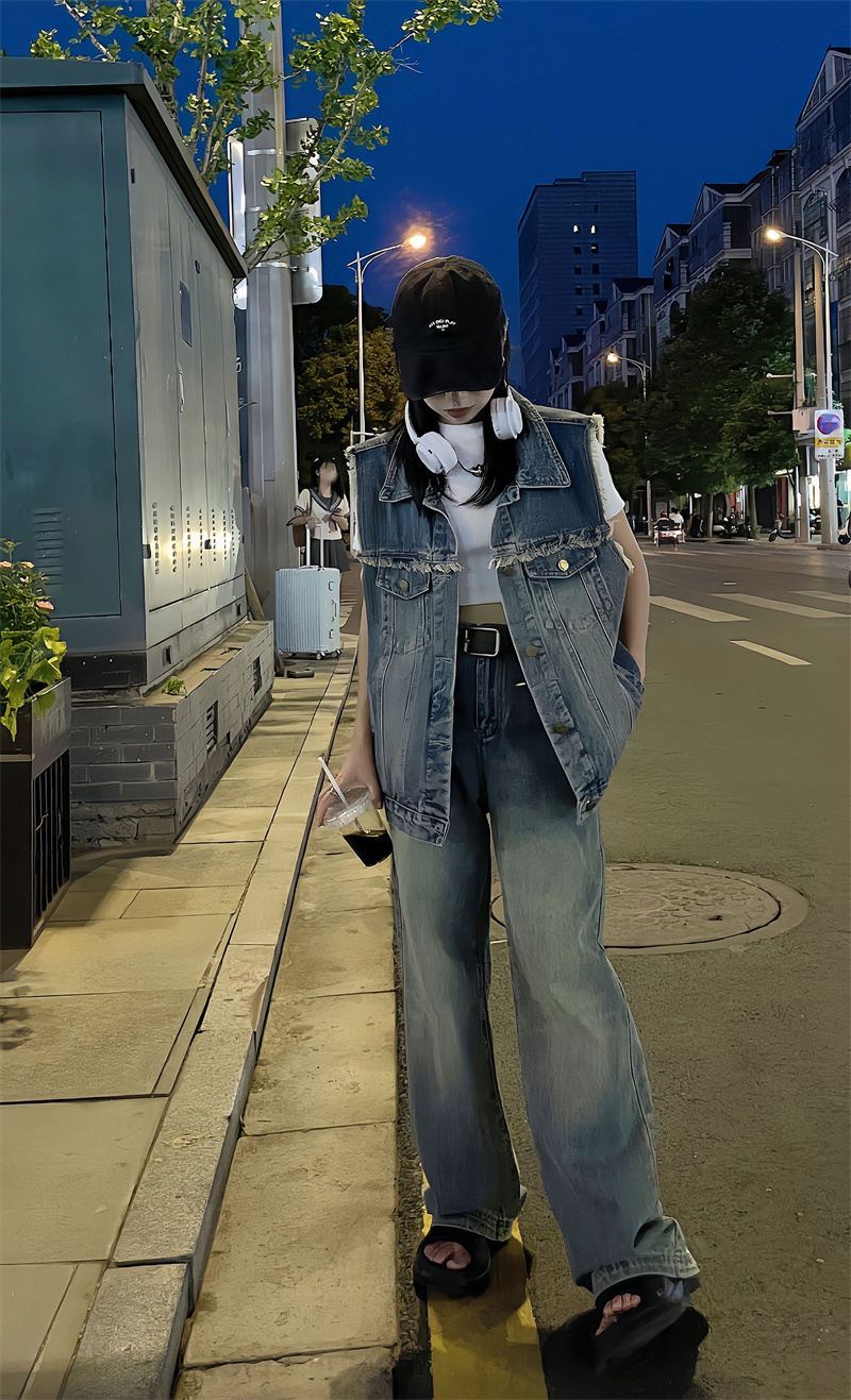 아메리칸 스타일 레트로 데님 조끼 코트 여성 봄 2025 새로운 도착 디자인 감각 느슨한 민소매스토어 가기