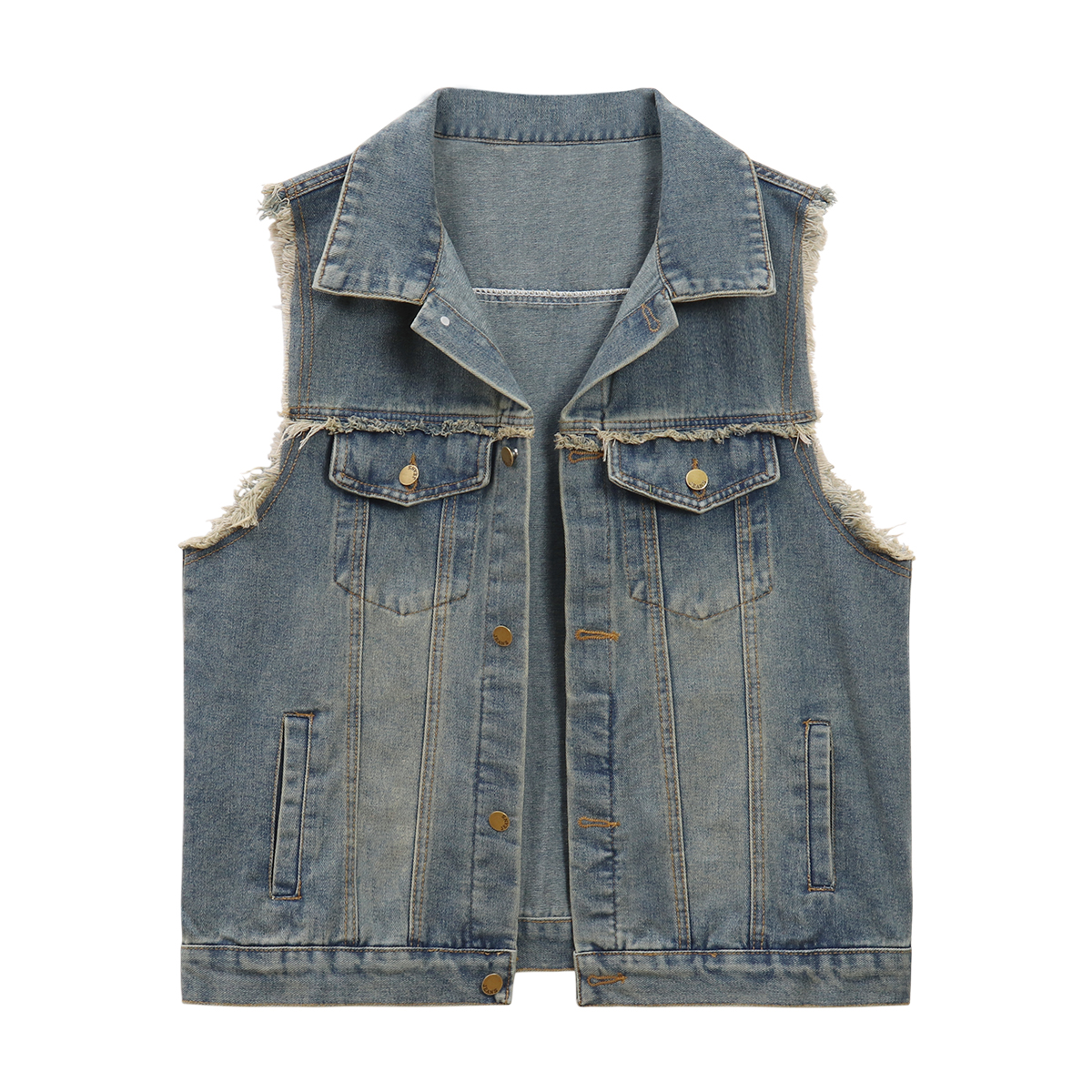 아메리칸 스타일 레트로 데님 조끼 코트 여성 봄 2025 새로운 도착 디자인 감각 느슨한 민소매