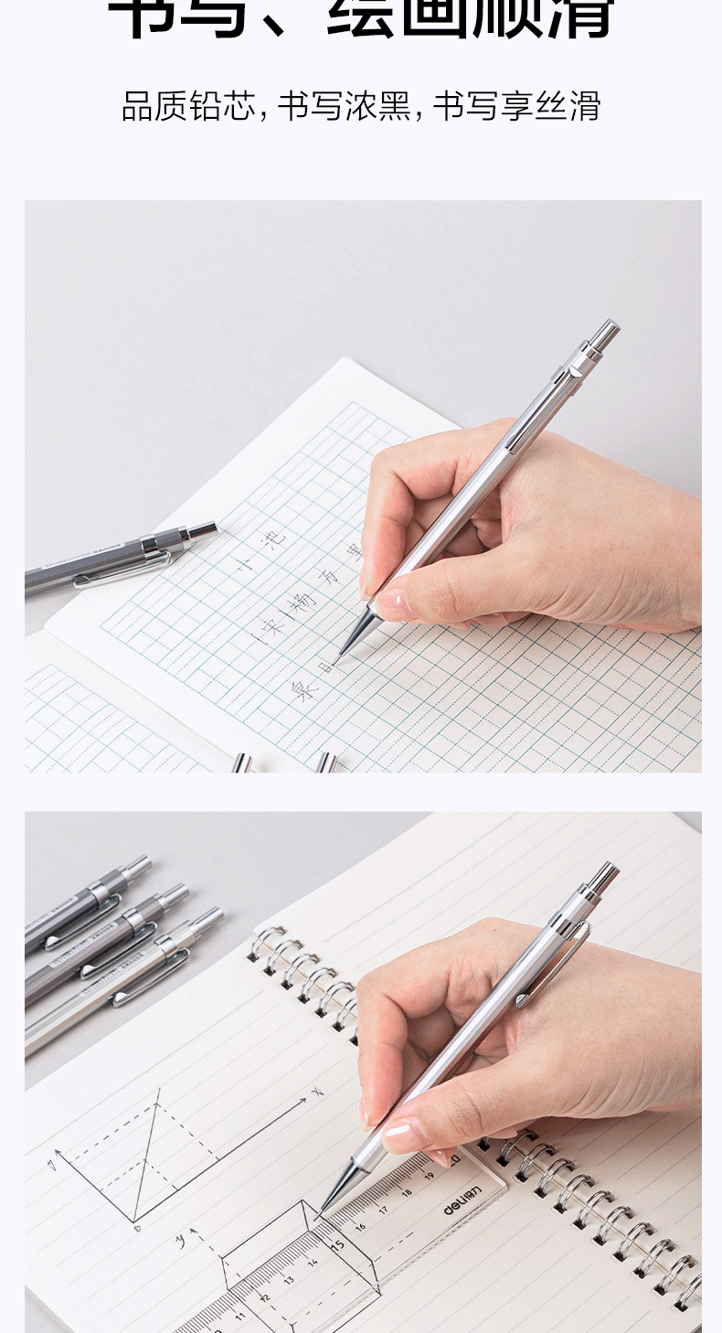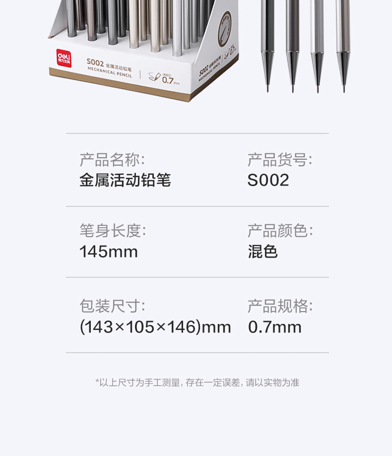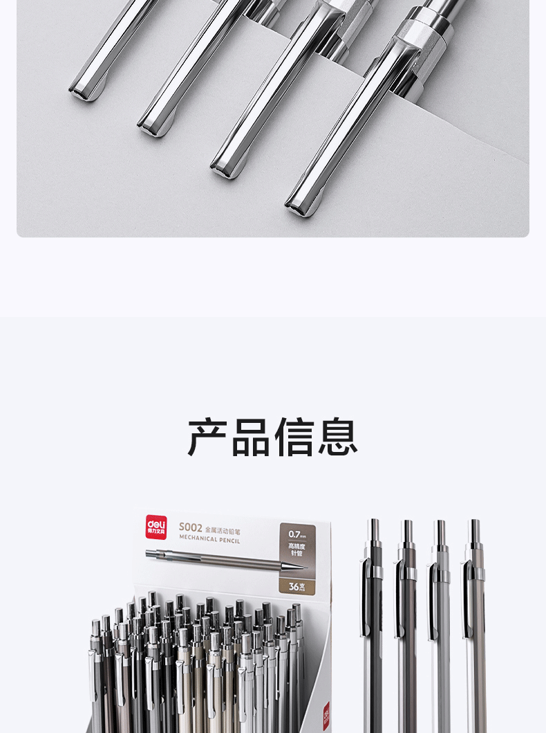 델리 S001/S002 금속 자동 연필 0.5/0.7mm 저중심 펜촉 학생용 푸시형 연필스토어 가기