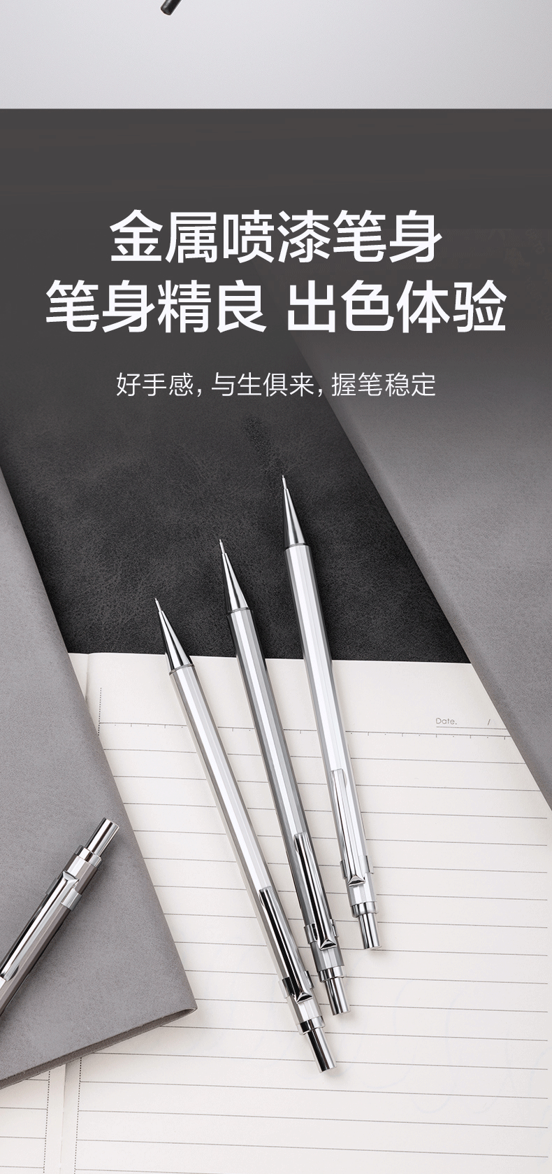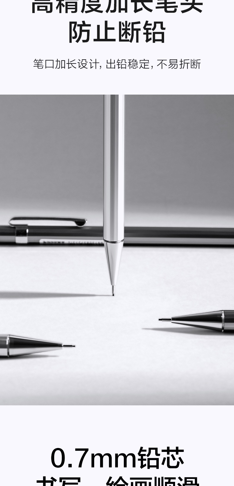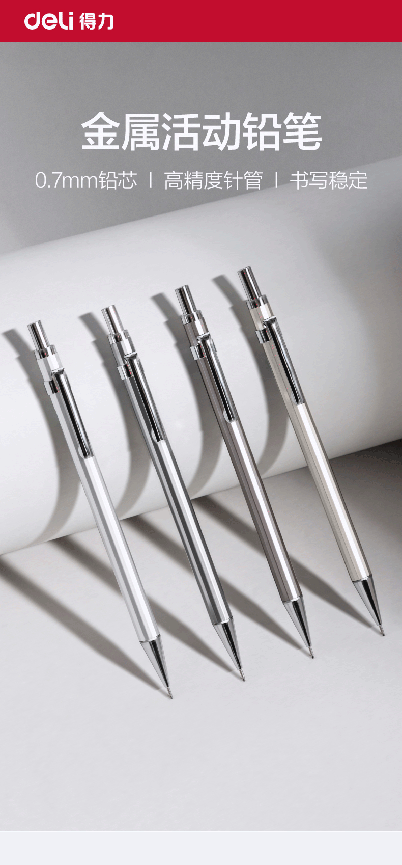 델리 S001/S002 금속 자동 연필 0.5/0.7mm 저중심 펜촉 학생용 푸시형 연필