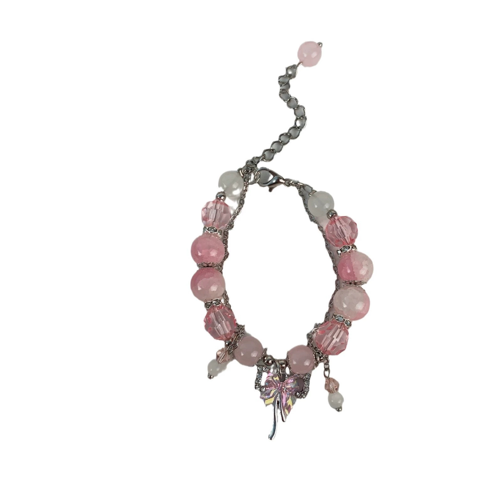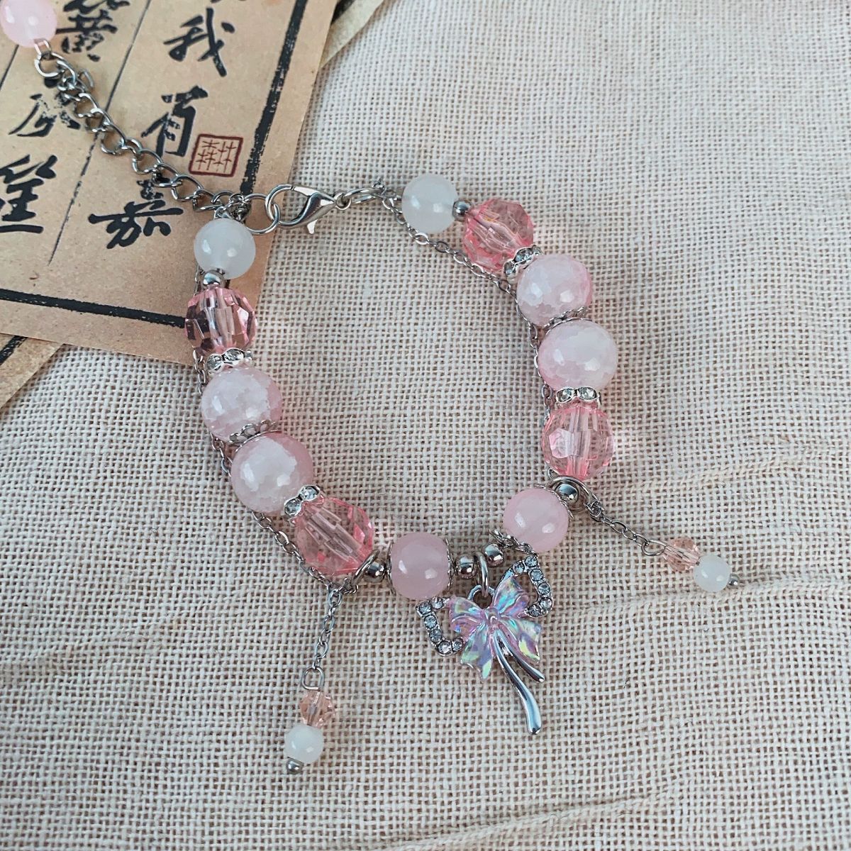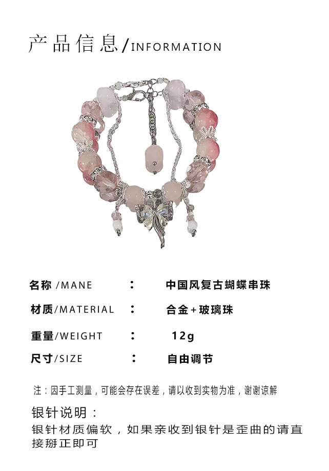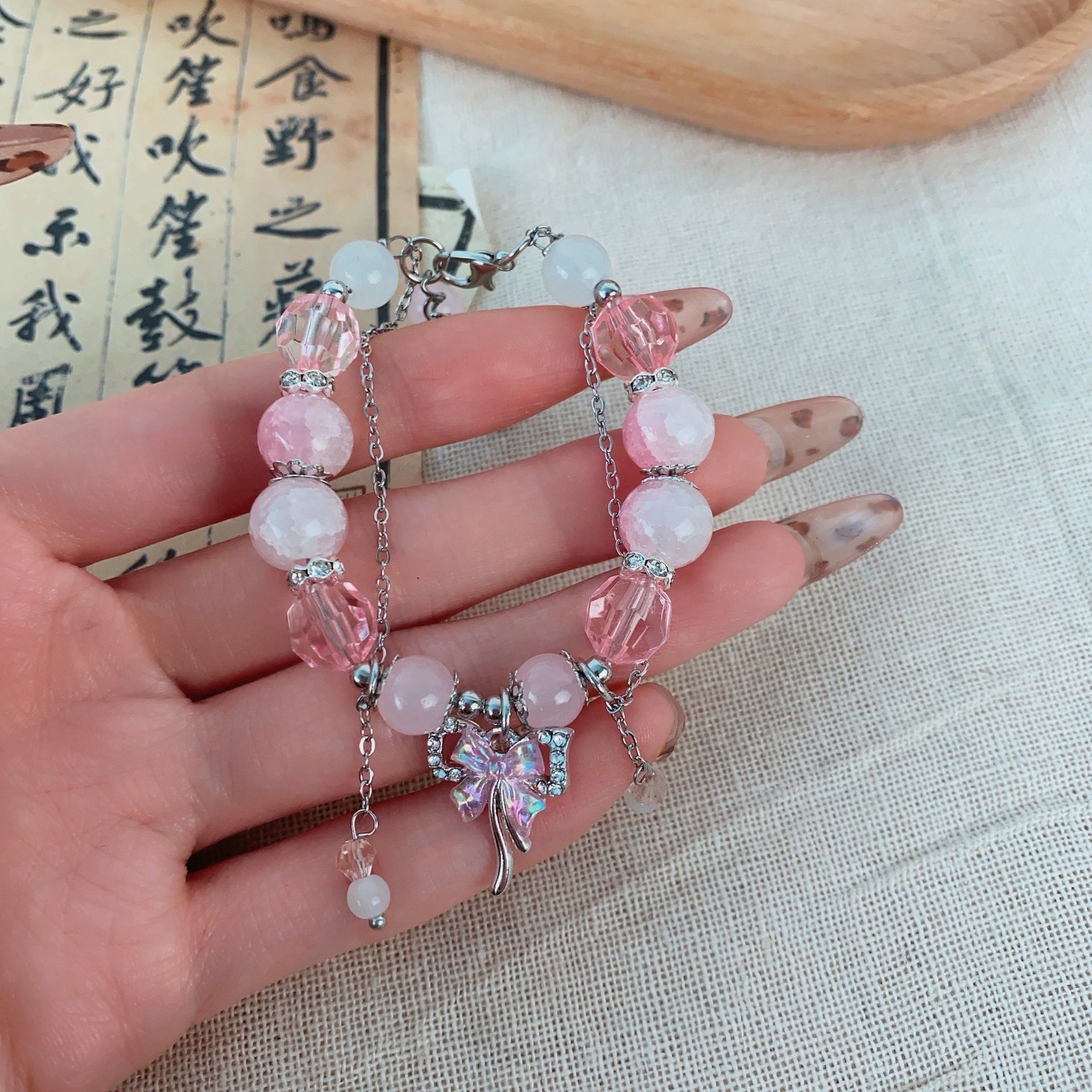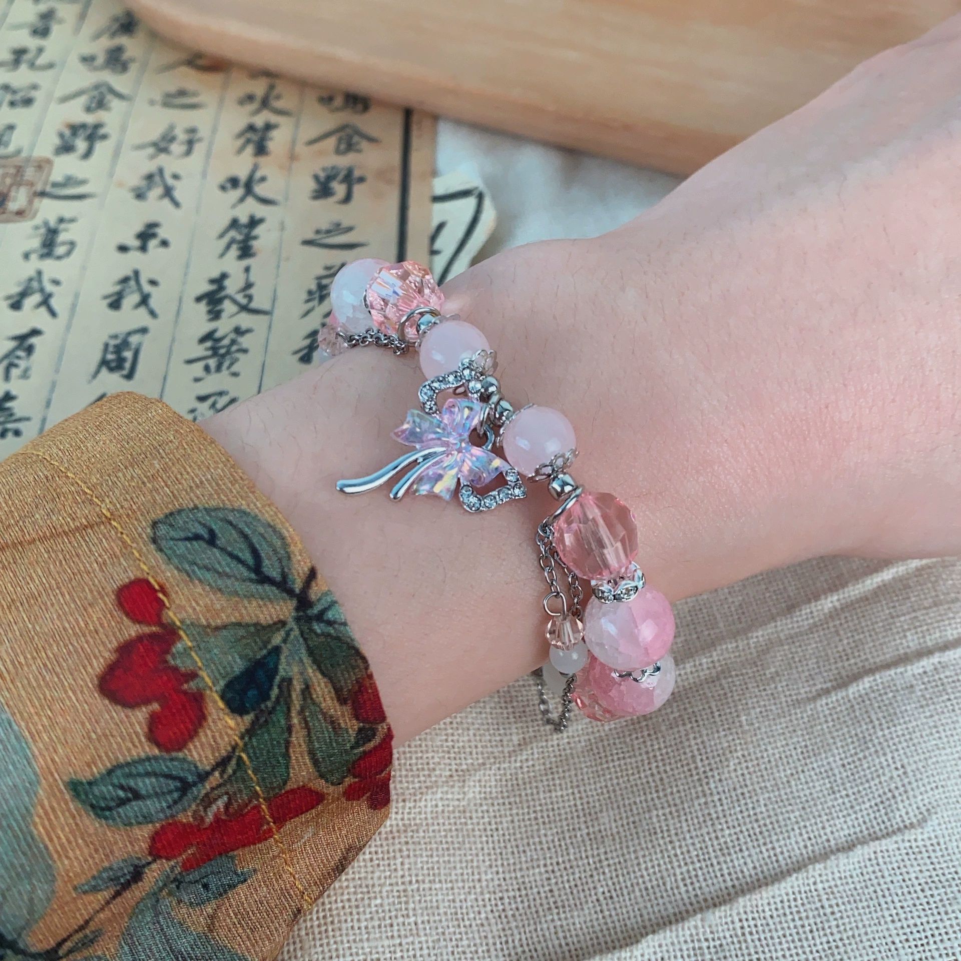 새로운 중국 핑크 활 펜던트 팔찌 여성용 골동품 고급 구슬 팔찌 빈티지 올 매치 팔찌스토어 가기