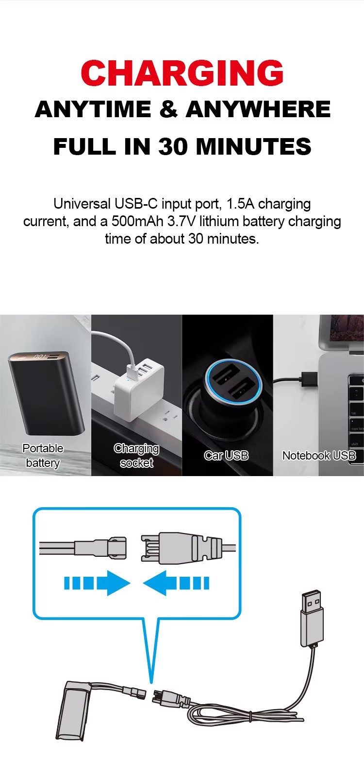 电池:3.7V 500mAh锂电池