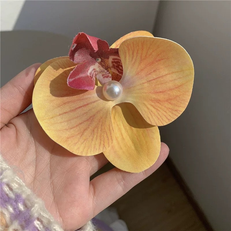 Didi는 동일한 녹색 phalaenopsis 머리핀 사이드 꽃 시뮬레이션 꽃 머리 장식 해변 여행 헤어 액세서리를 두려워하지 않습니다.스토어 가기