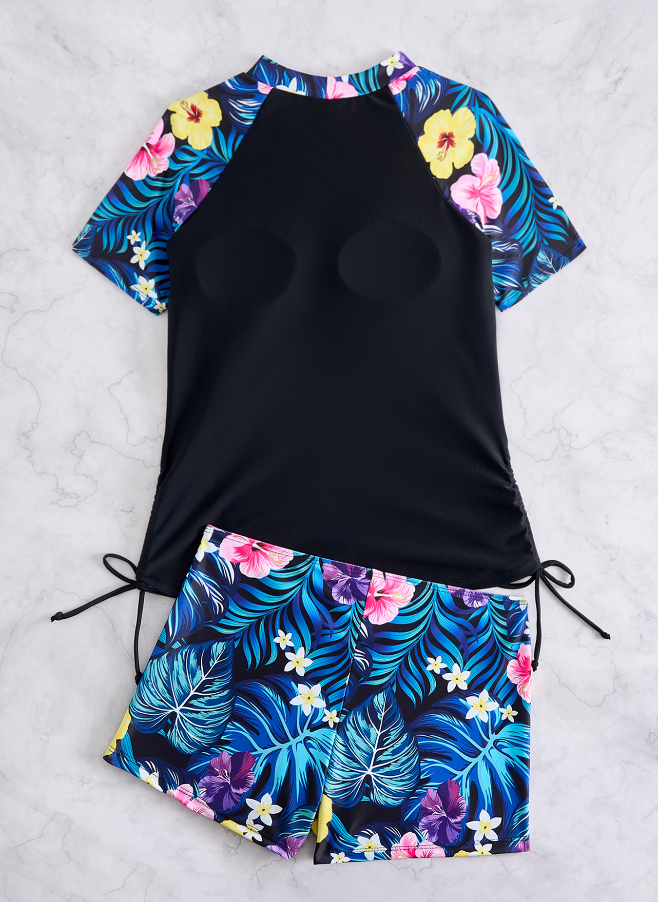 유럽과 미국의 수영복 크로스보더 스플릿 수영복 프린트 반팔 복서 수영복 아마존 스포츠 수영복 여성 2025