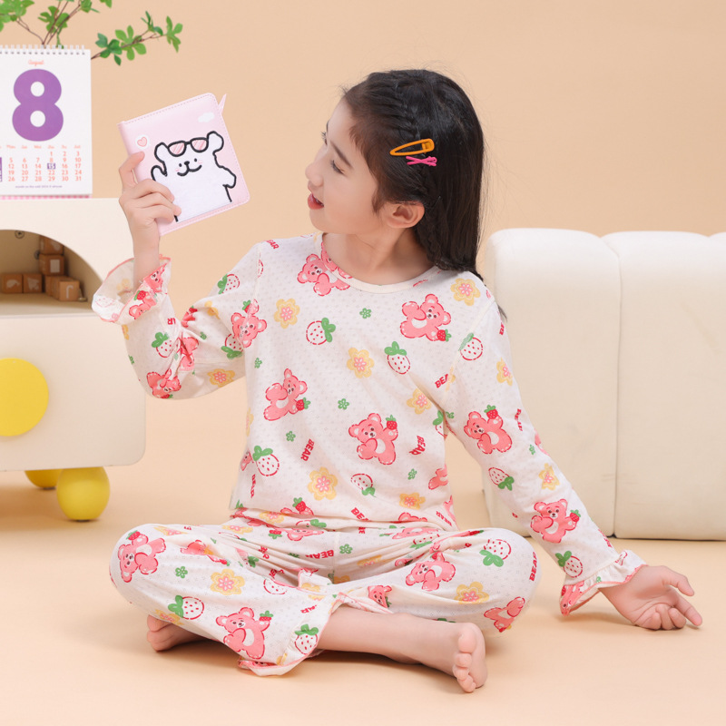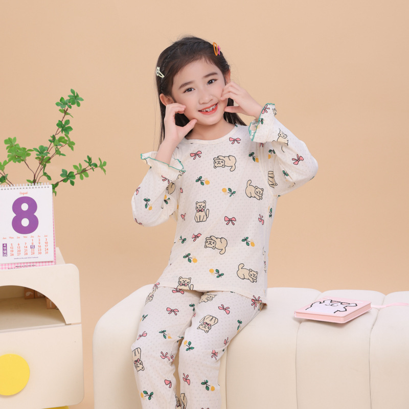 소녀 잠옷 여름 순수한면 얇은 긴 소매 새로운 도착 카물복 여름 어린이 에어컨 홈 의류 세트