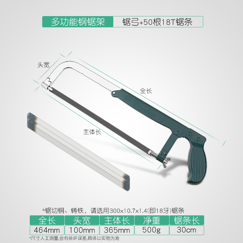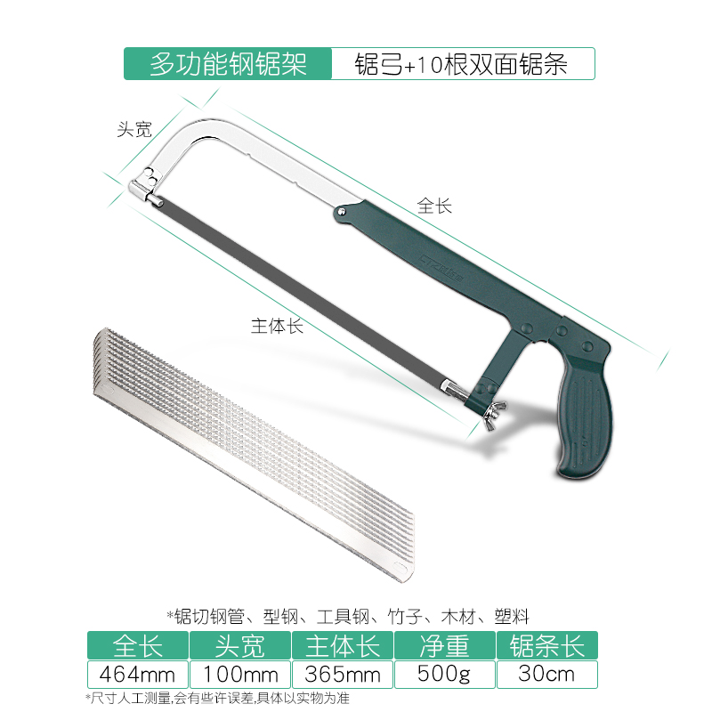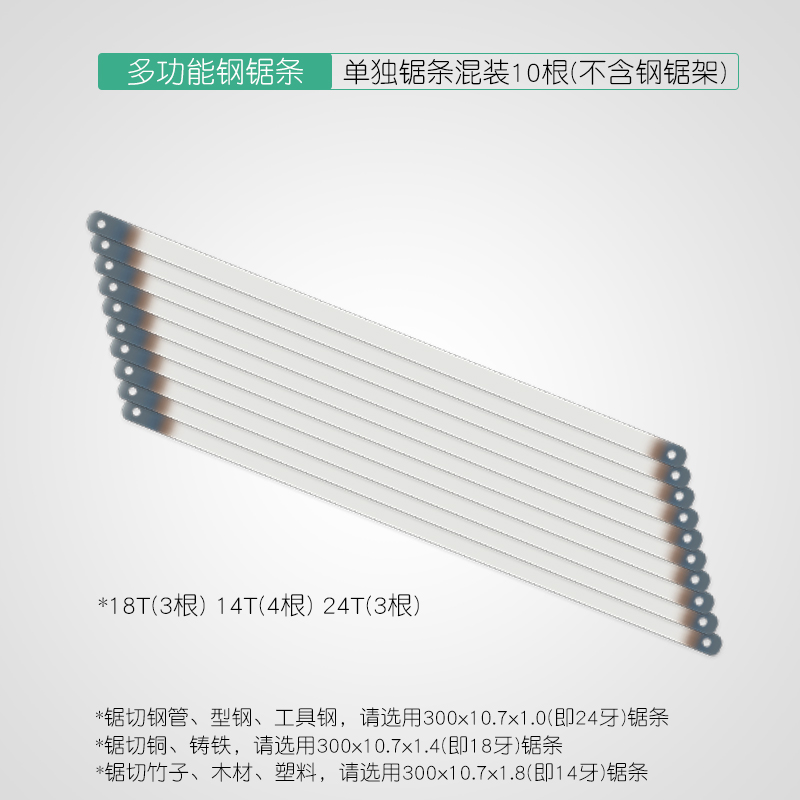 • 고급스러운 대형 쇠톱 프레임에는 톱날 10개가 포함되어 있습니다.