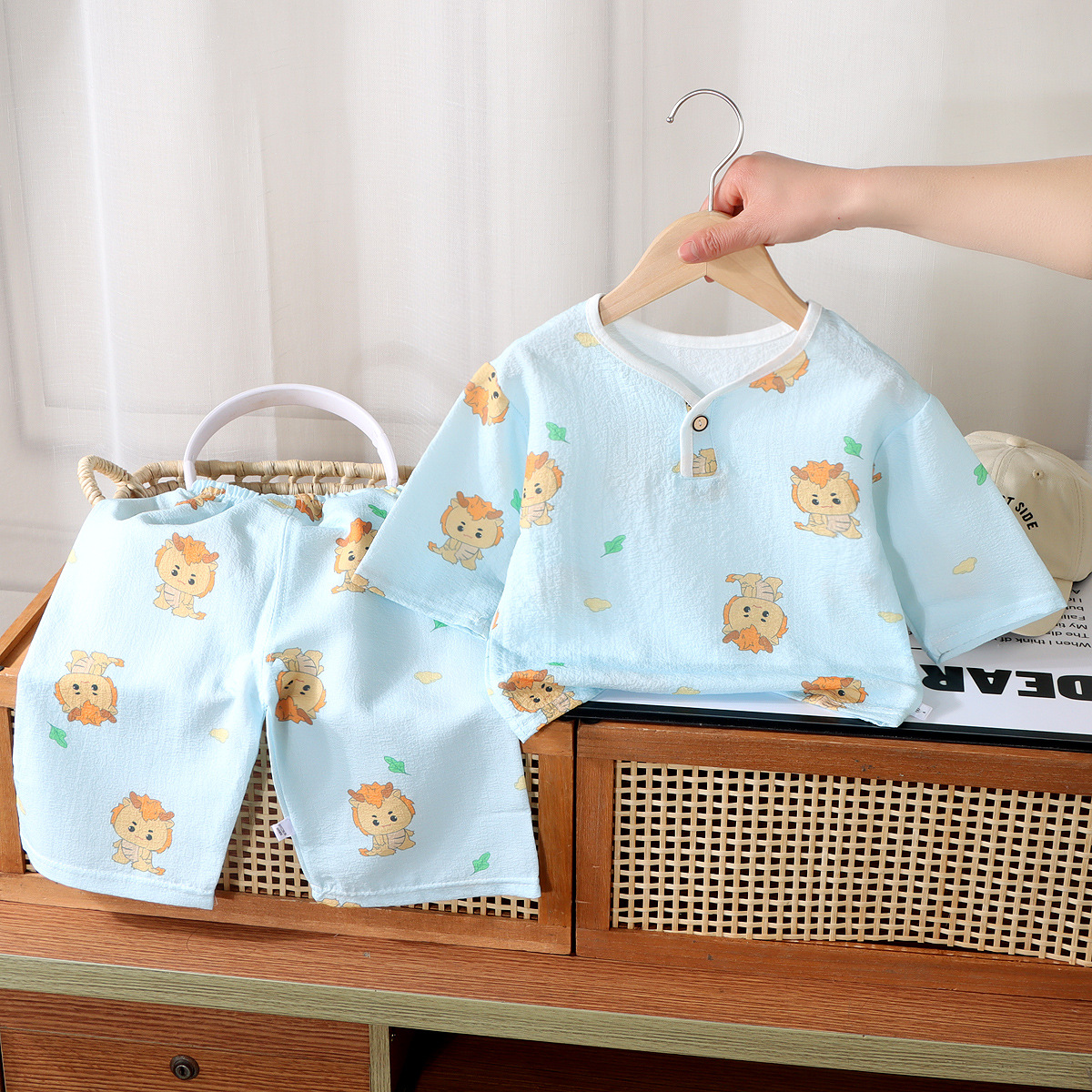 어린이 얇은 잠옷 남녀 아기 버블 여름 홈 옷 유아 자른 슬리브 바지 에어컨 옷스토어 가기