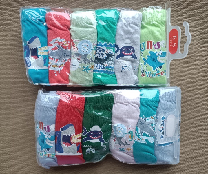 BOY 언더웨어 크로스보더 6팩 후크백 남녀 아동용 만화 프린트 삼각팬티 공장 직판스토어 가기
