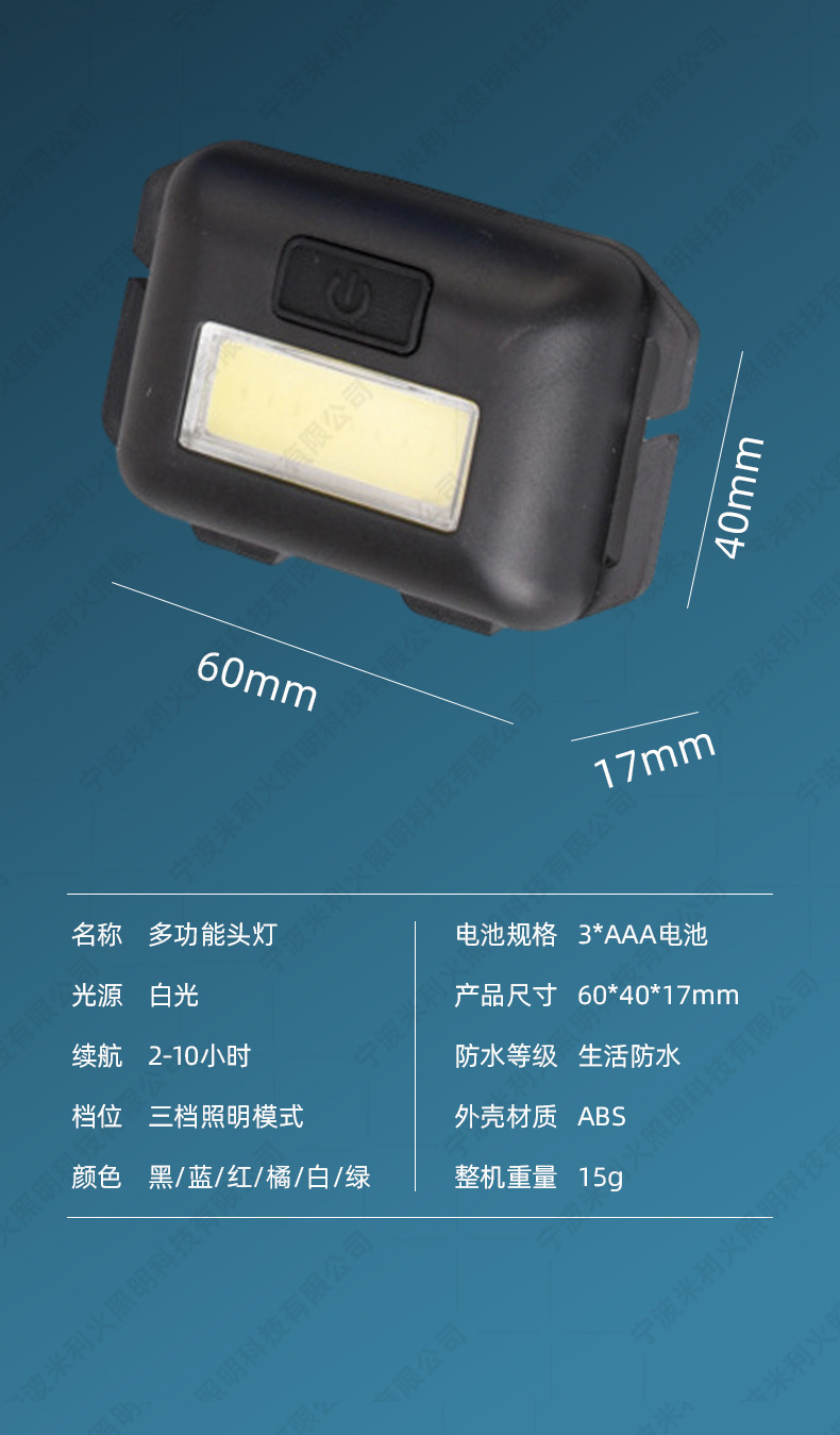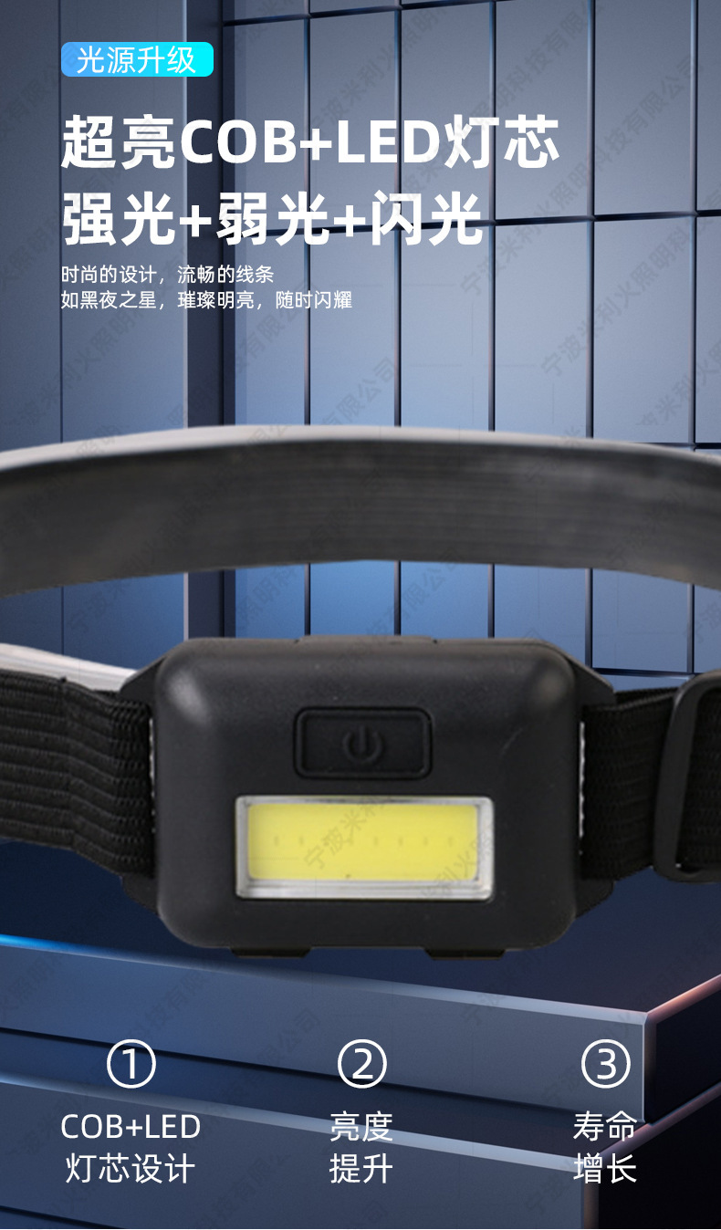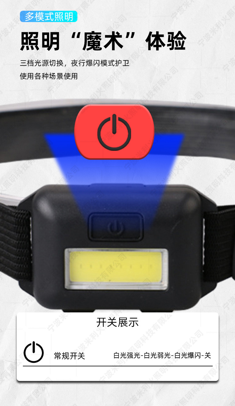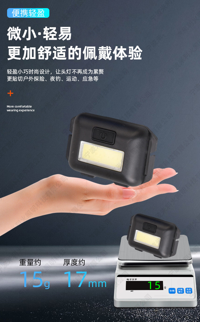 미니 COB 3 섹션 No.7 수영장 헤드 라이트 플라스틱 야간 낚시 헤드 착용 야외 헤드 라이트