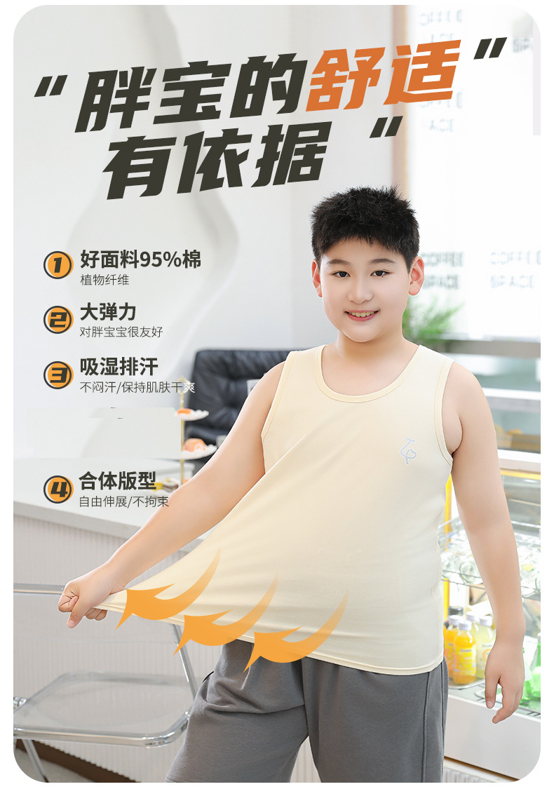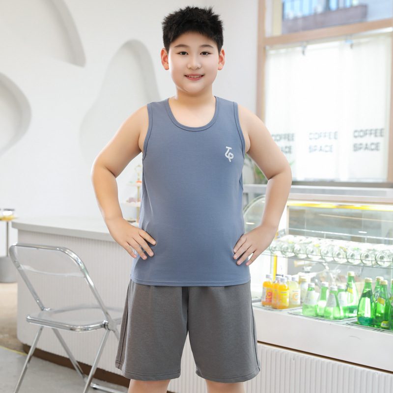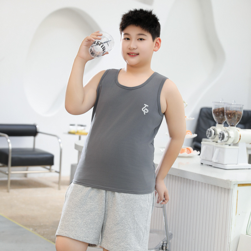 뚱뚱한 어린이 조끼 남성 큰 아이들 여름 순면 지방 플러스 사이즈 소년의 민소매 티셔츠 어린이 내복 학생베이스 셔츠스토어 가기