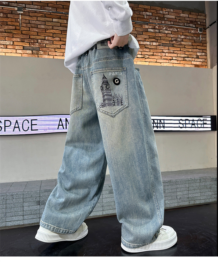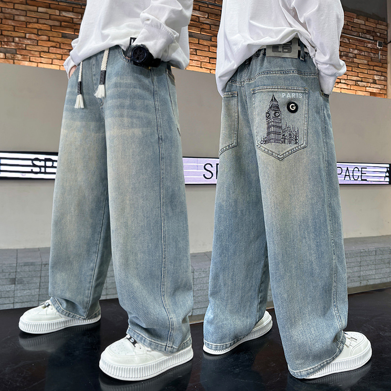 남아용 바지, 2025년 봄 가을 신상 트렌디하고 멋진 아동 가을 청바지, 루즈한 남아용 스트레이트 팬츠, 멋스러운스토어 가기