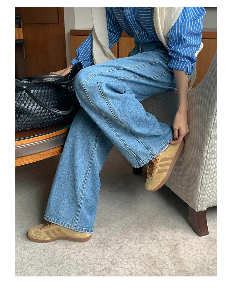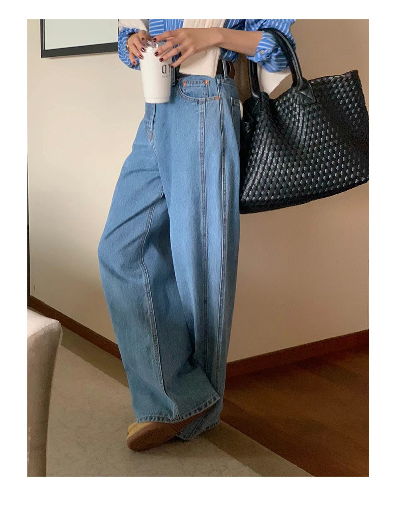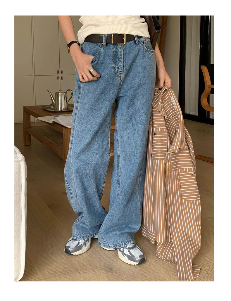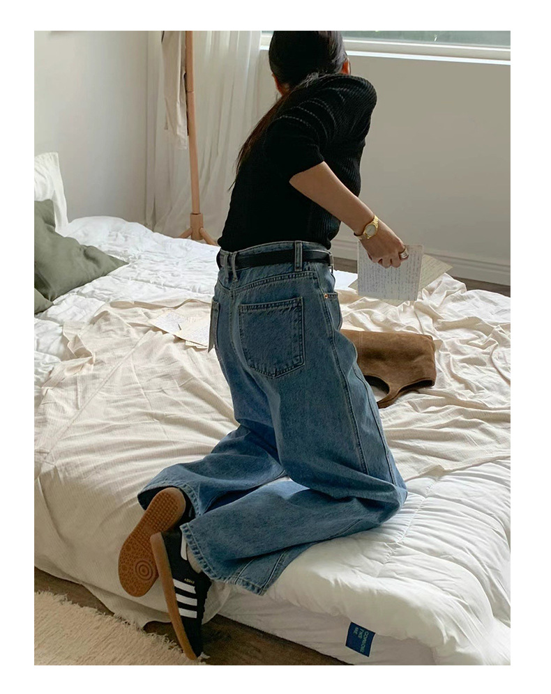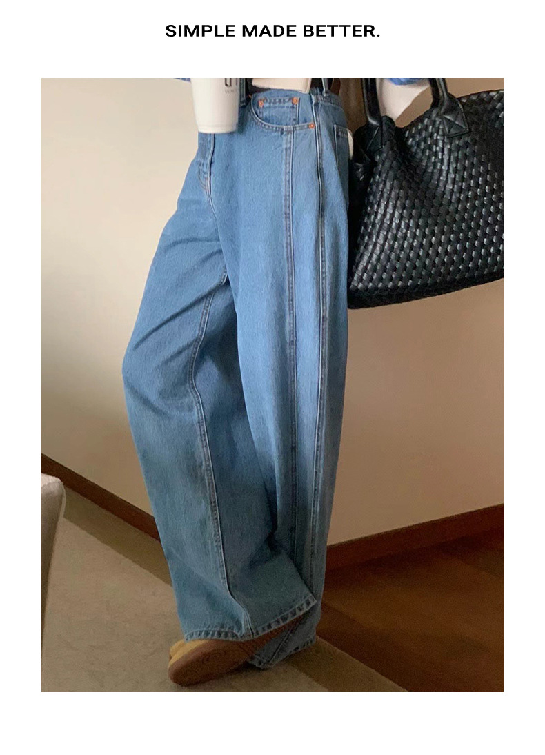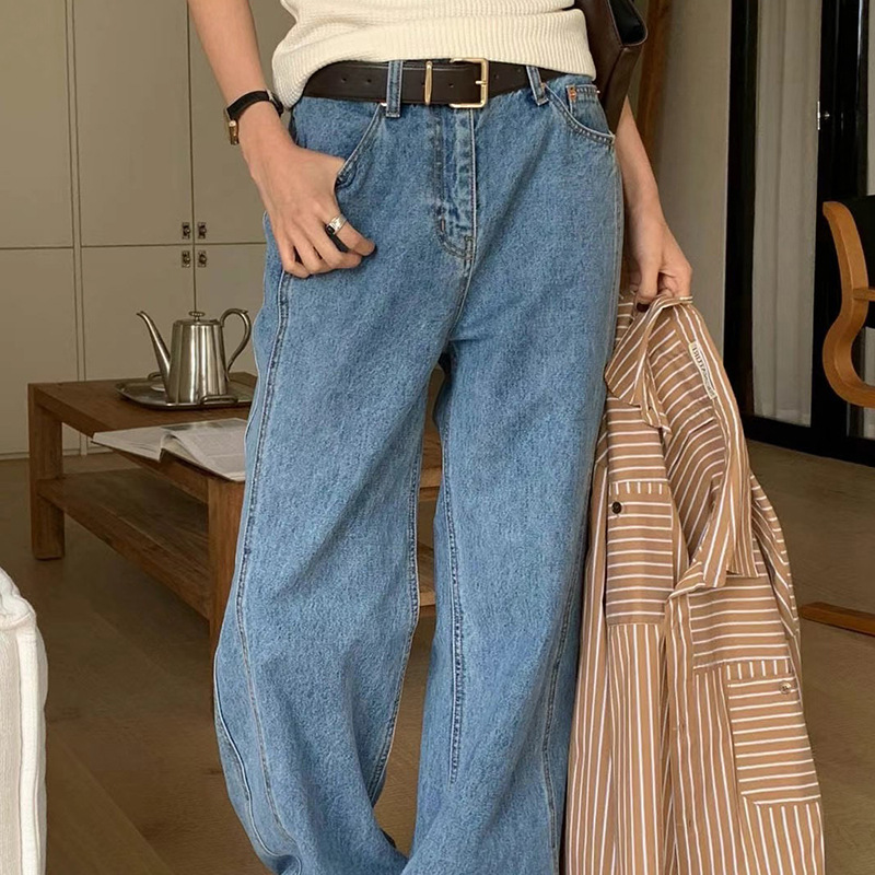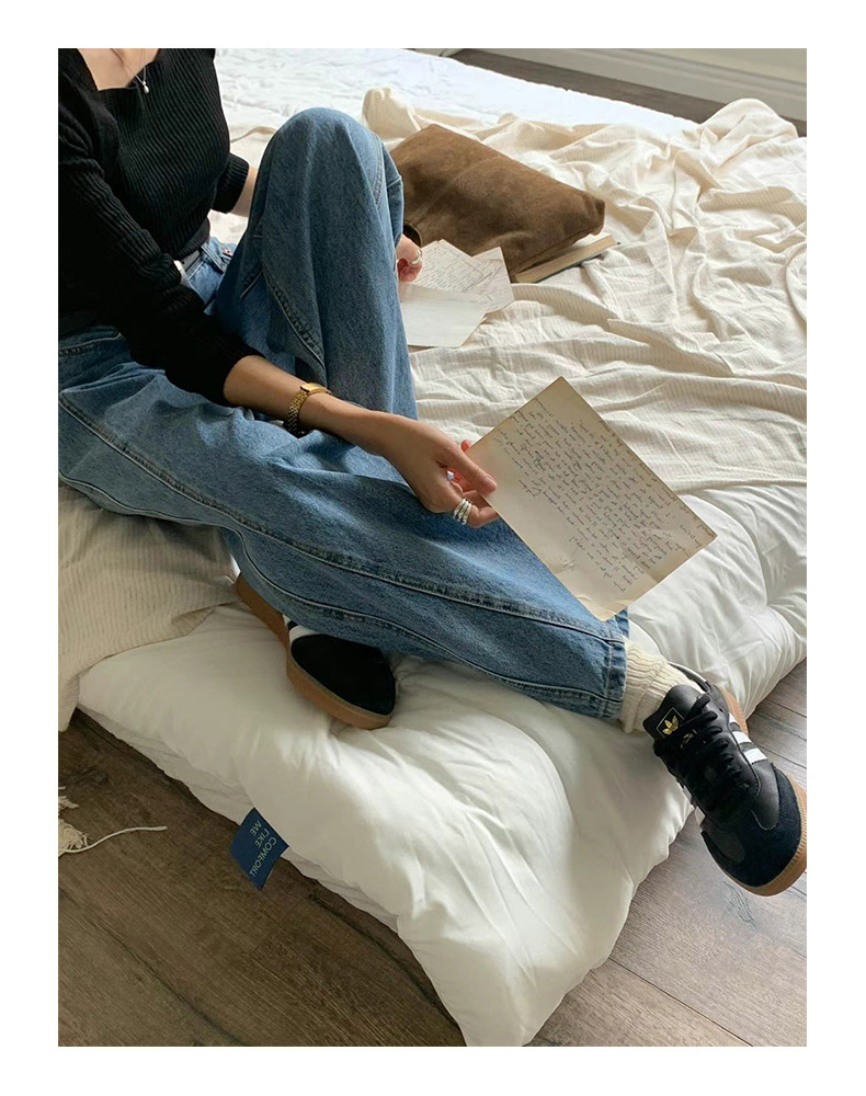 2026년 봄 신상 한국 스타일 레트로 캐주얼 심플 하이웨이스트 슬림핏 만능 스트레이트 데님 롱팬츠 여성용스토어 가기
