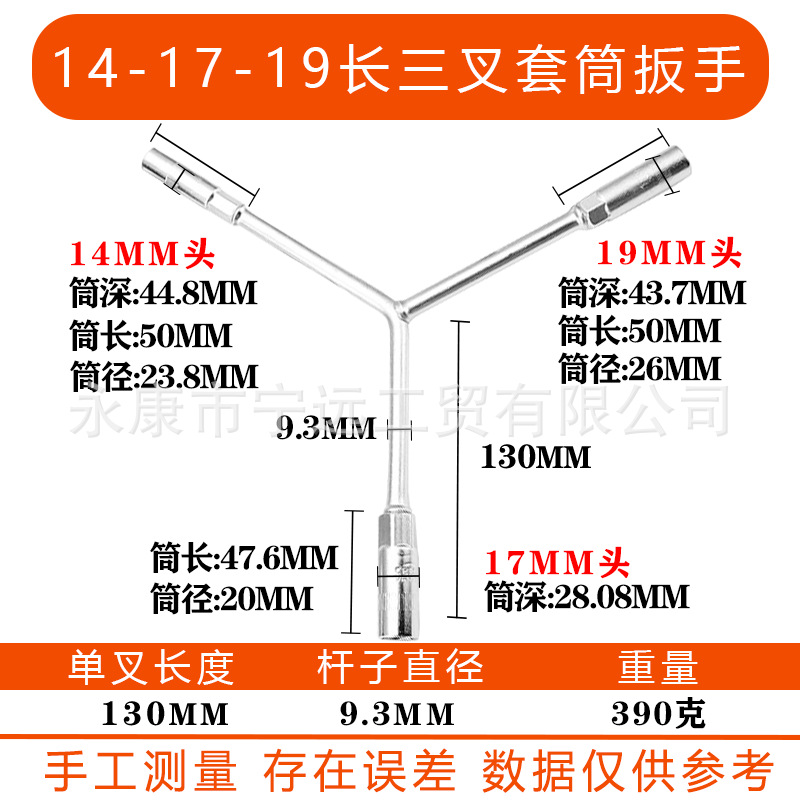 • 14-17-19 긴 삼구 렌치(크롬 도금)