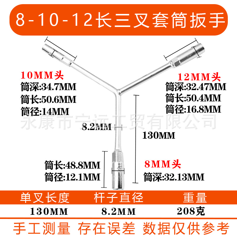 • 8-10-12 긴 삼구 렌치(크롬 도금)