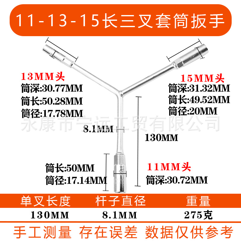 • 11-13-15 긴 삼구 렌치(크롬 도금)