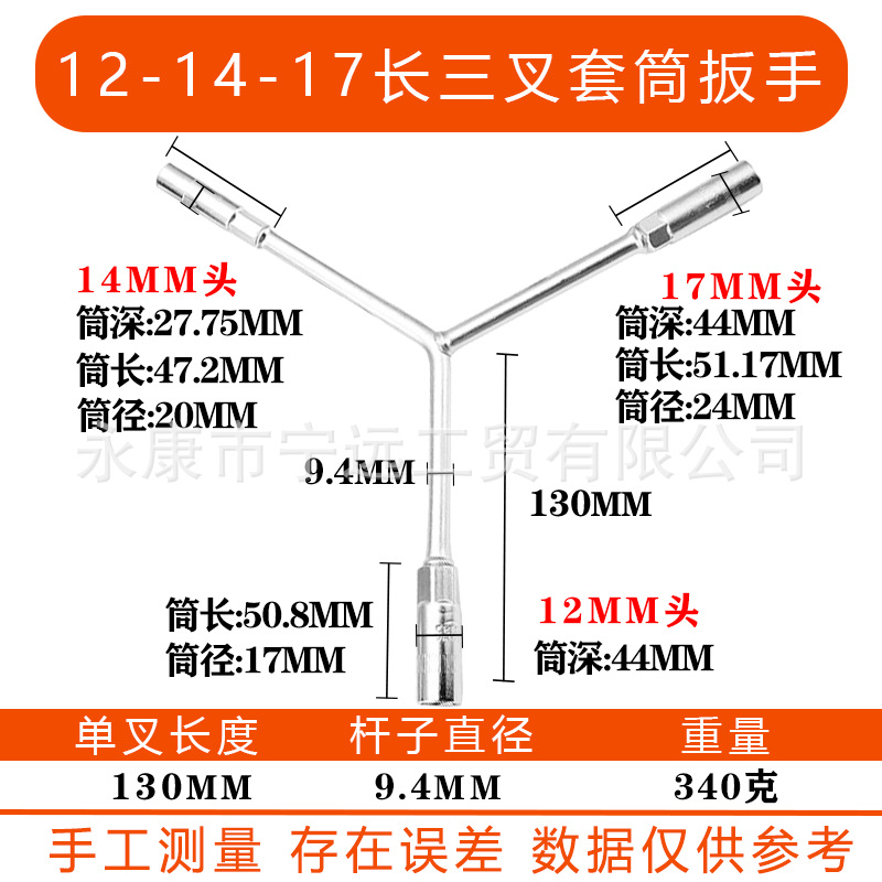 • 12-14-17 긴 삼구 렌치(크롬 도금)