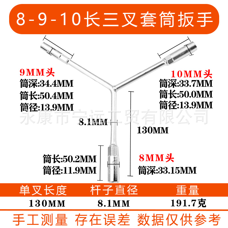 • 8-9-10 긴 삼구 렌치(크롬 도금)