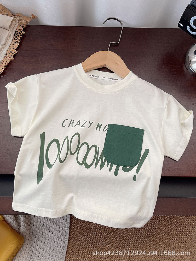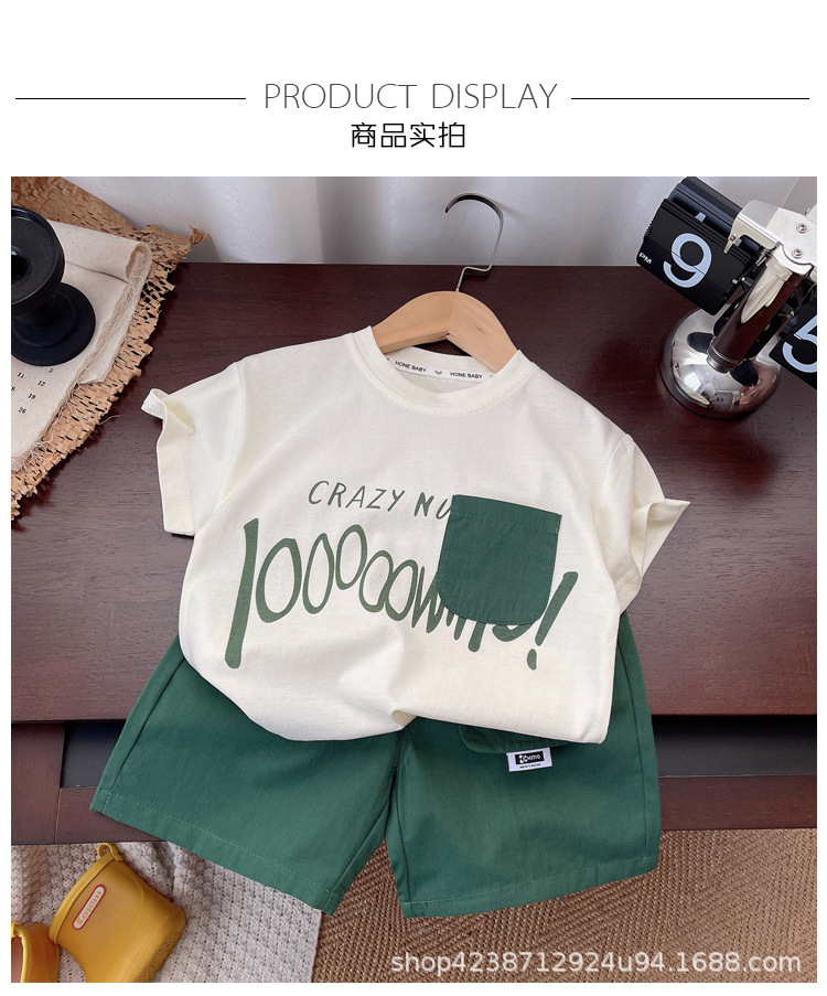 느슨한 톱 보이즈 세트 여름 한국식 캐주얼 알파벳 아동복 어린이 얇은 남성복스토어 가기