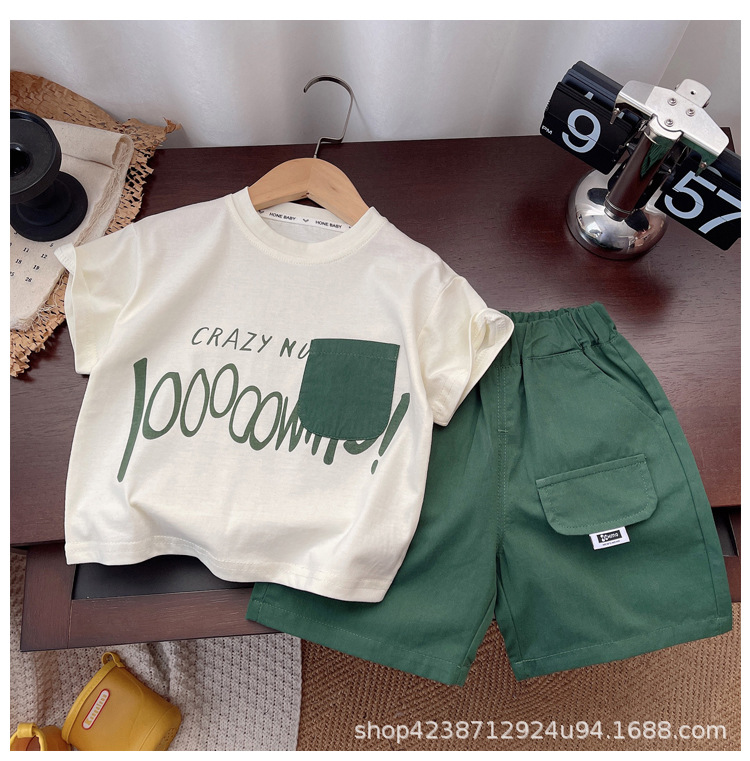 느슨한 톱 보이즈 세트 여름 한국식 캐주얼 알파벳 아동복 어린이 얇은 남성복