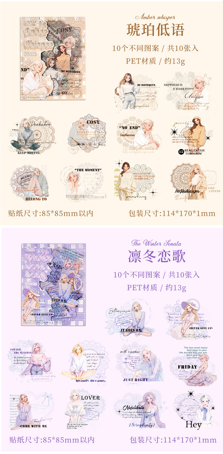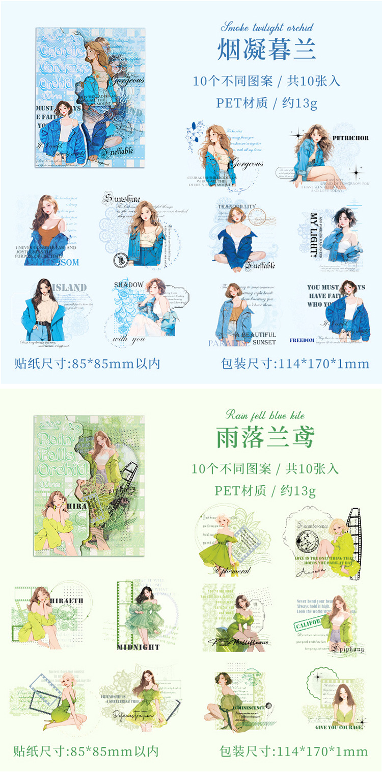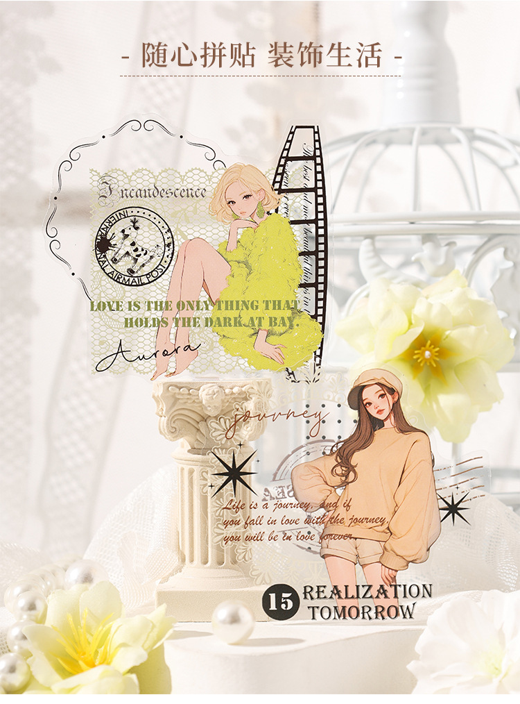 Yuezhen 이른 아침 황혼의 그림 풍경 핸드북 스티커 팩 국경 복고풍 애완 동물 스티커 핸드북 스티커 고급 감각